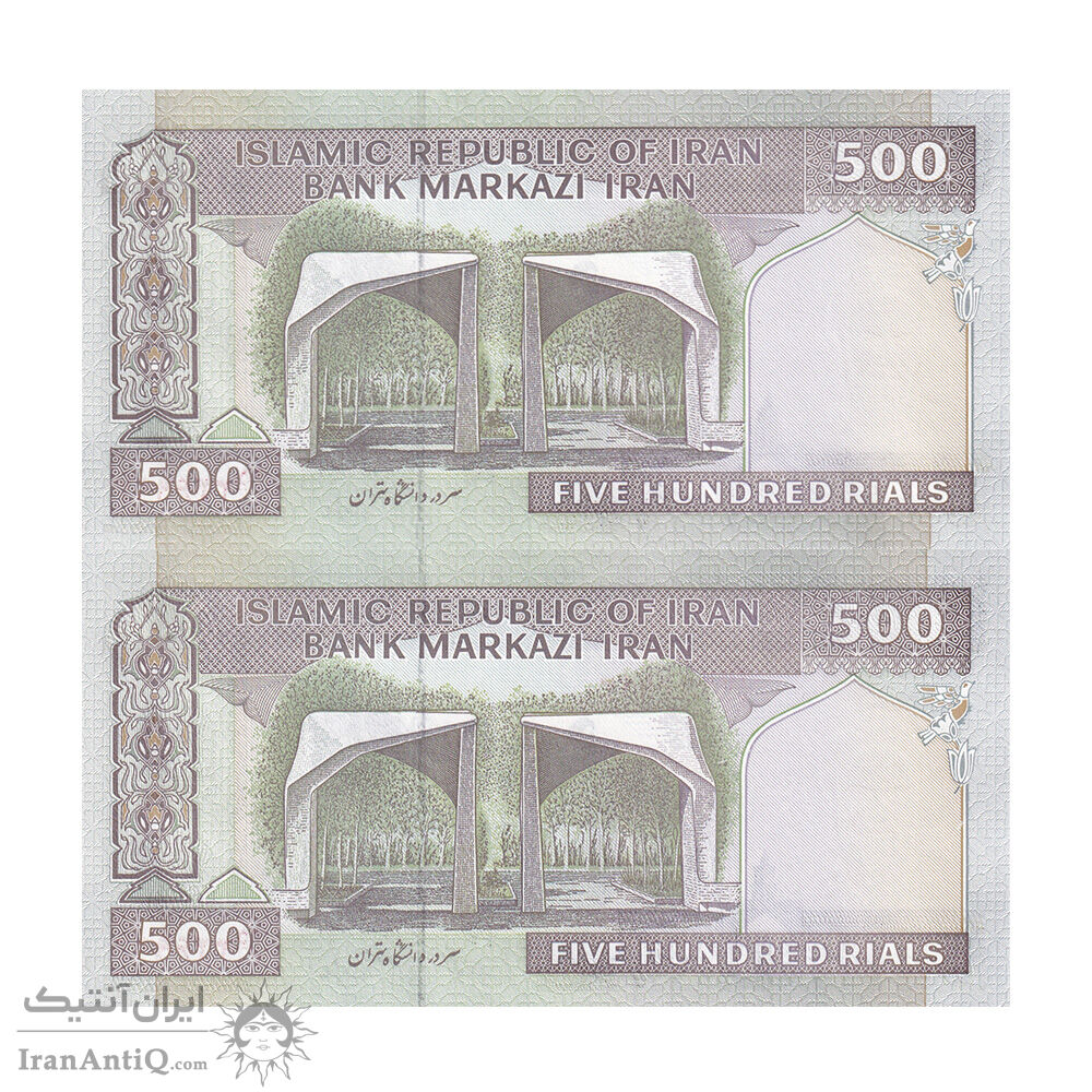 اسکناس 500 ریال (جعفری - شیبانی) شماره بزرگ - جفت - UNC63 - جمهوری اسلامی