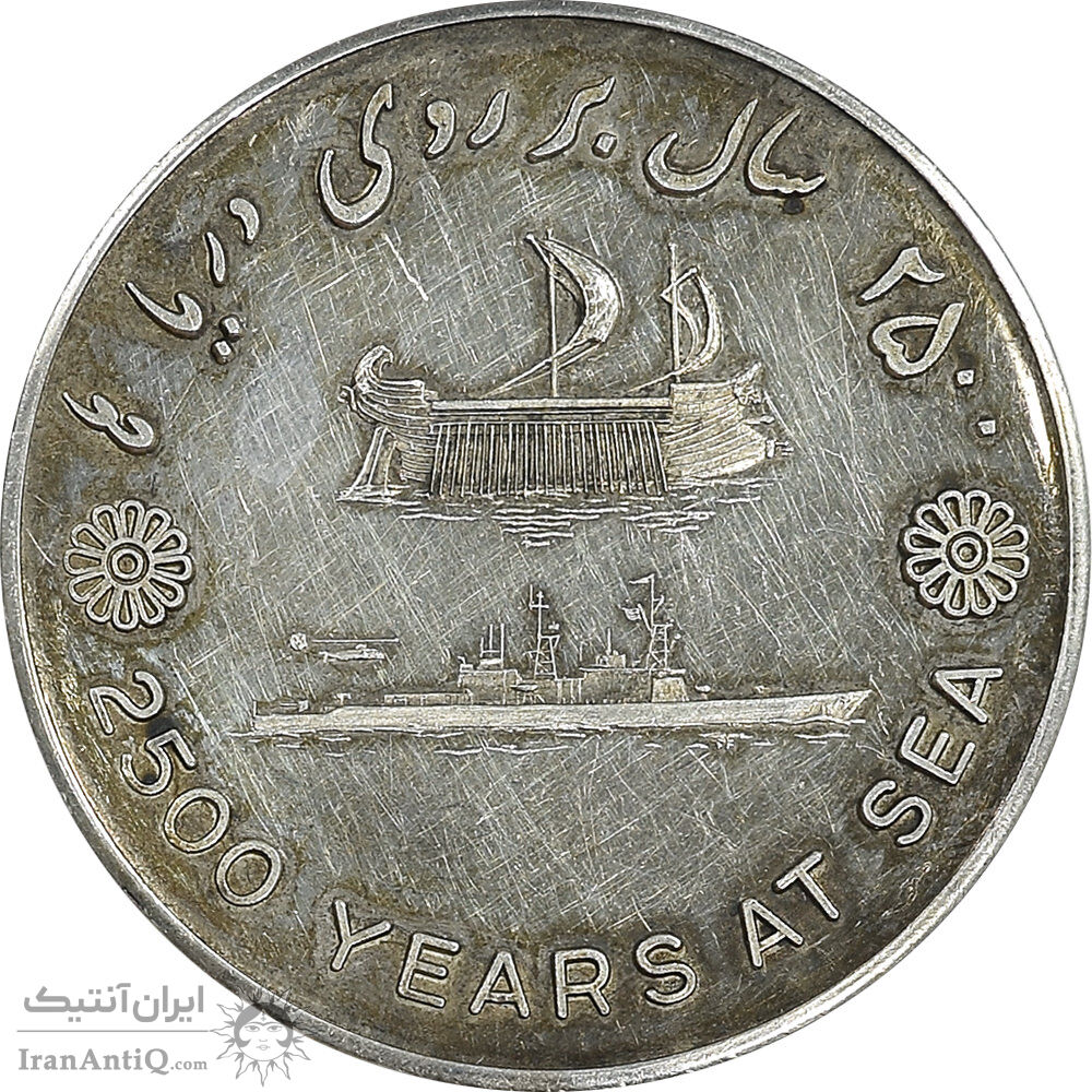 مدال نقره بر روی دریا ها 2535 - با جعبه فابریک - AU - محمد رضا شاه