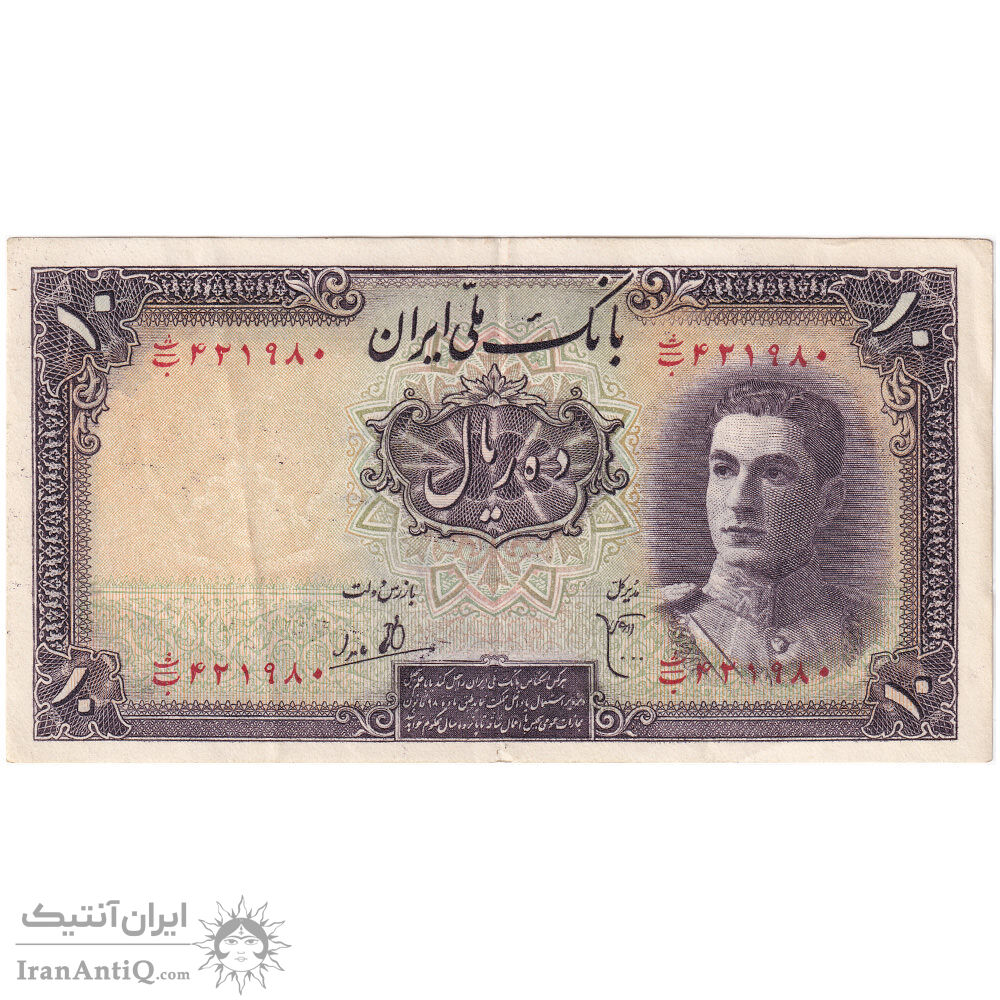 اسکناس 10 ریال سری اول - تک - AU50 - محمد رضا شاه