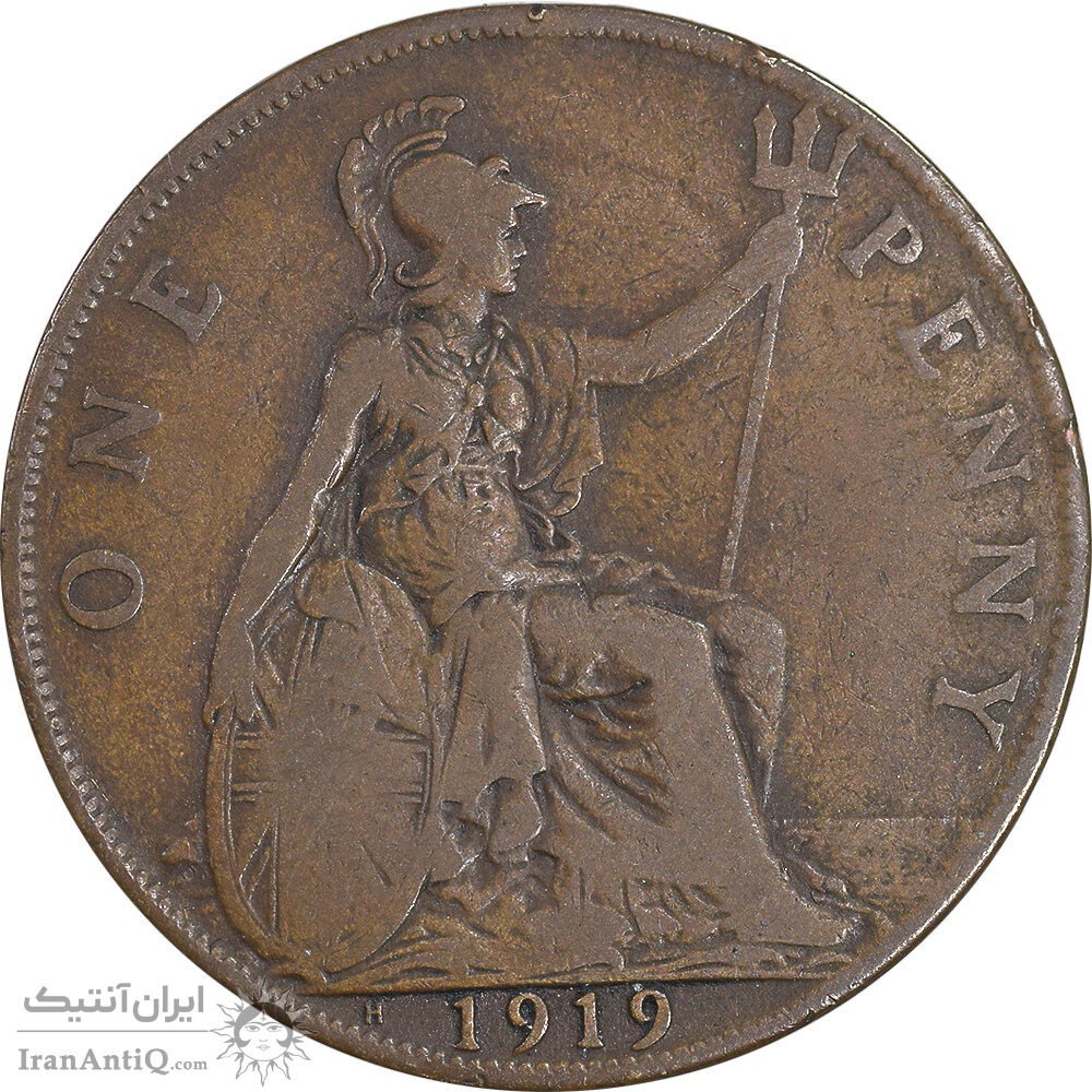 سکه 1 پنی 1919 جرج پنجم - VF30 - انگلستان