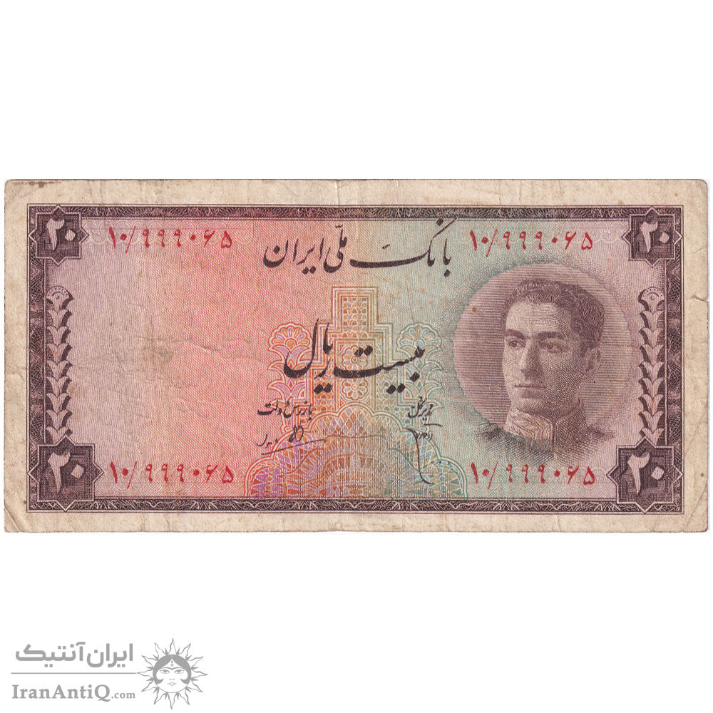 اسکناس 20 ریال سری سوم - تک - VF20 - محمد رضا شاه