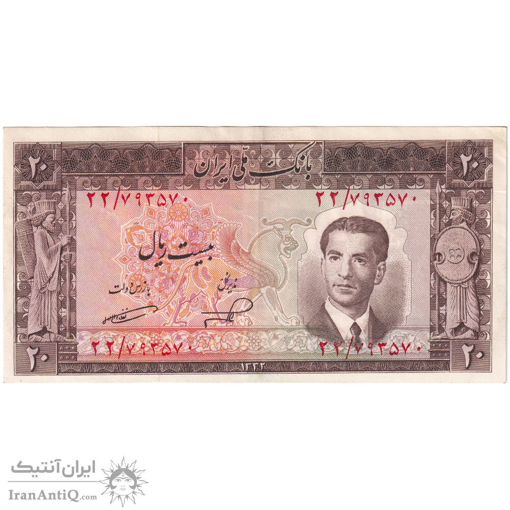 اسکناس 20 ریال 1332 - تک - AU53 - محمد رضا شاه