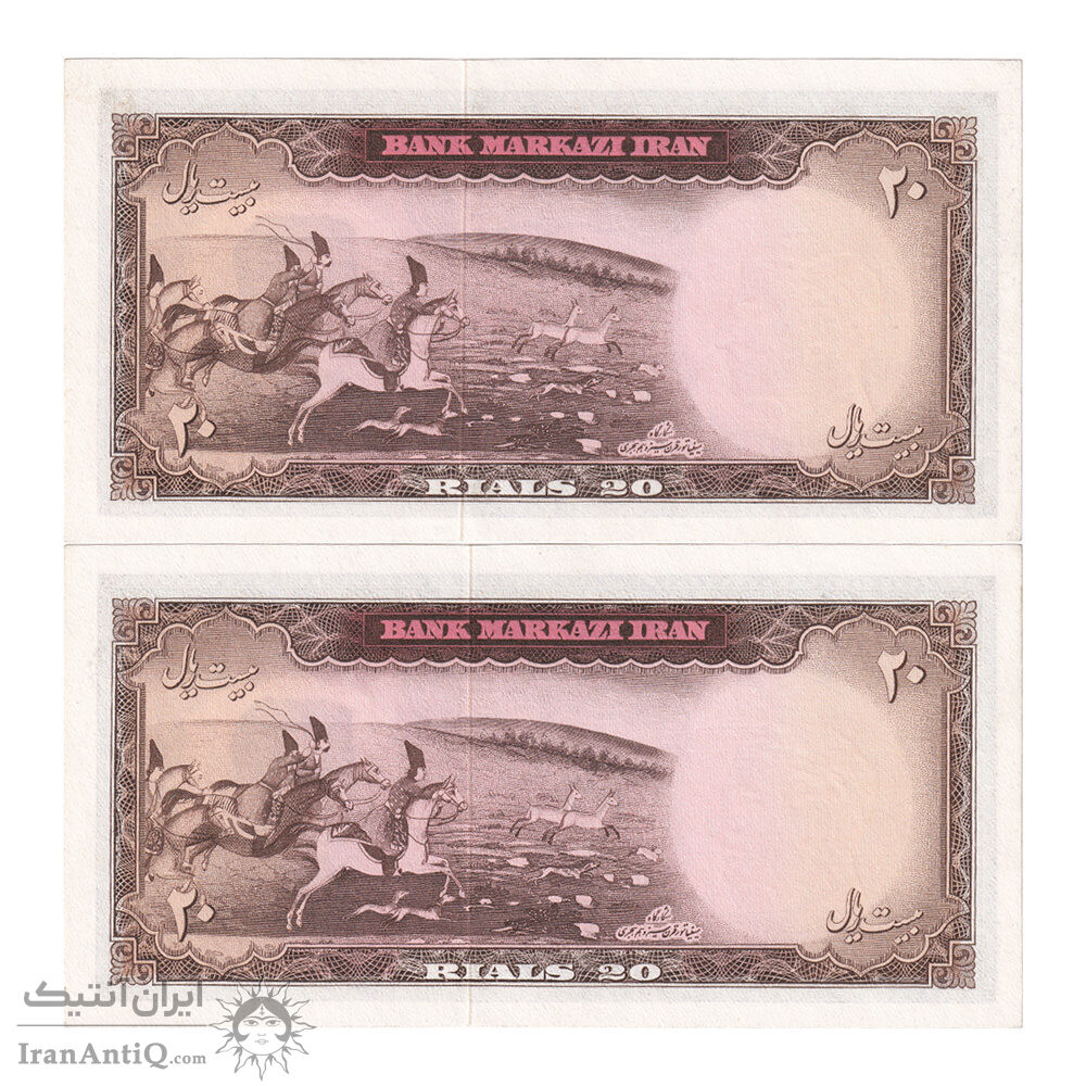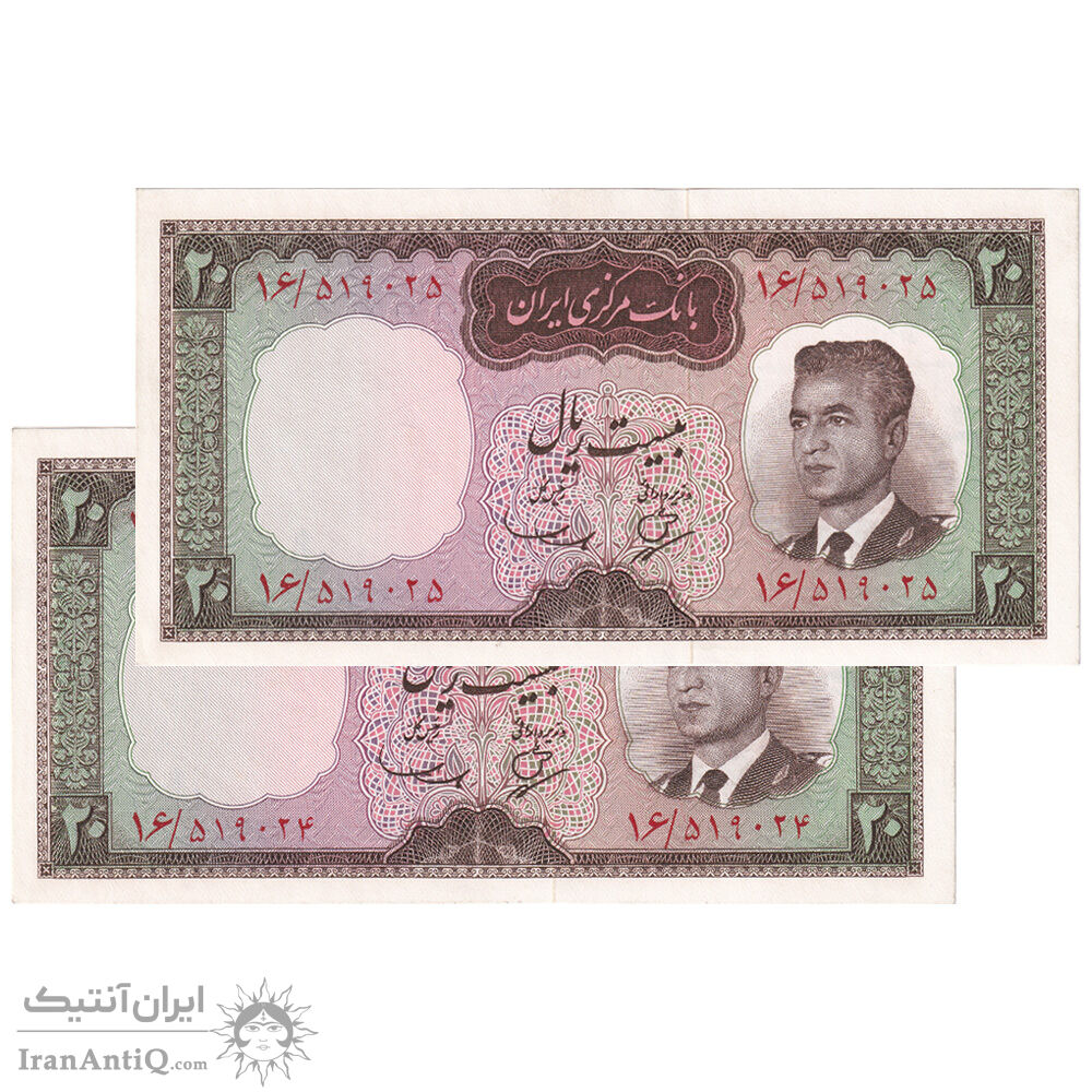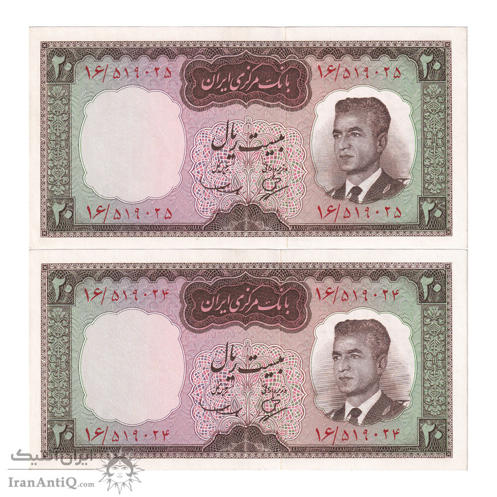 اسکناس 20 ریال (بهنیا - سمیعی) - جفت - UNC63 - محمد رضا شاه