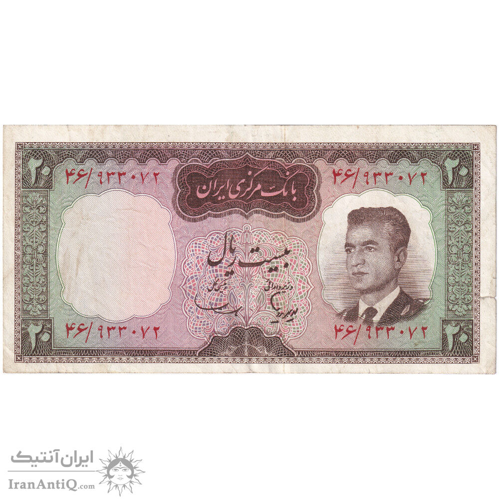 اسکناس 20 ریال (هویدا - سمیعی) - تک - VF30 - محمد رضا شاه