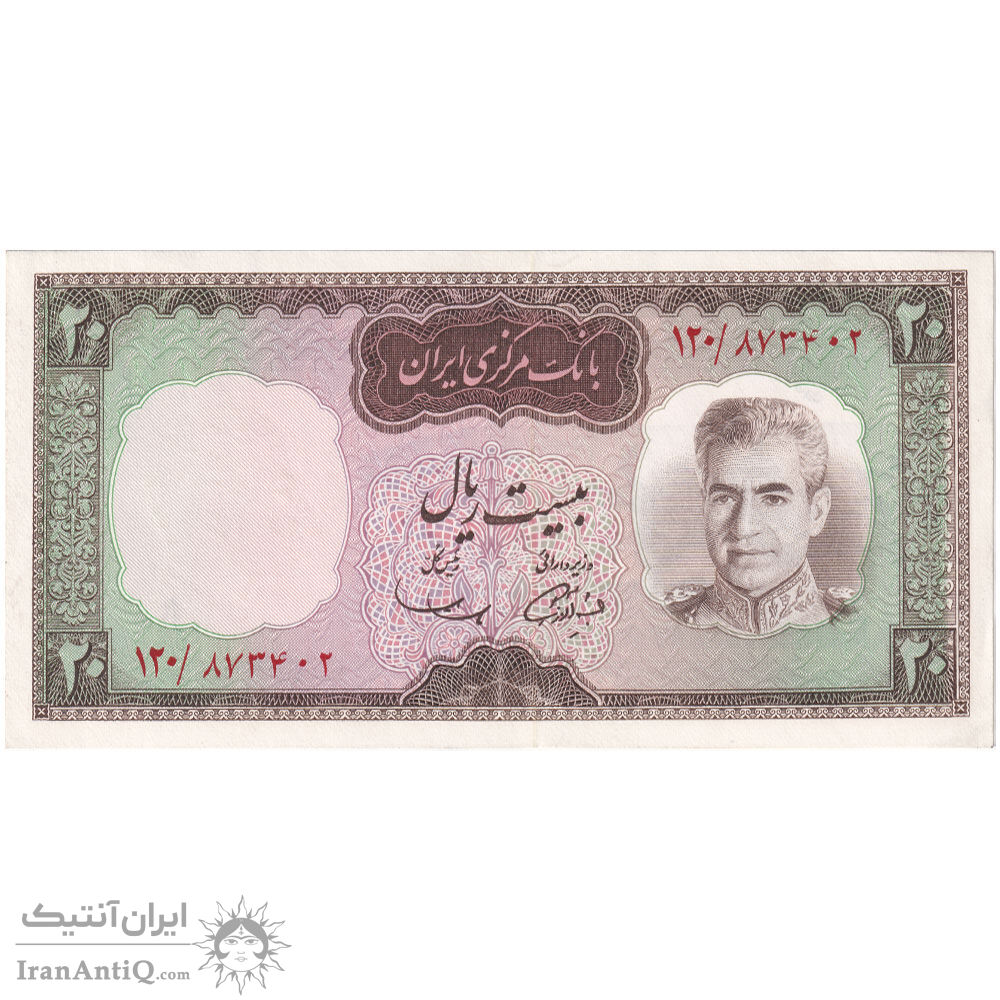 اسکناس 20 ریال (آموزگار - سمیعی) - تک - UNC62 - محمد رضا شاه