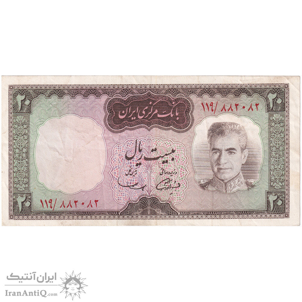 اسکناس 20 ریال (آموزگار - سمیعی) - تک - EF45 - محمد رضا شاه