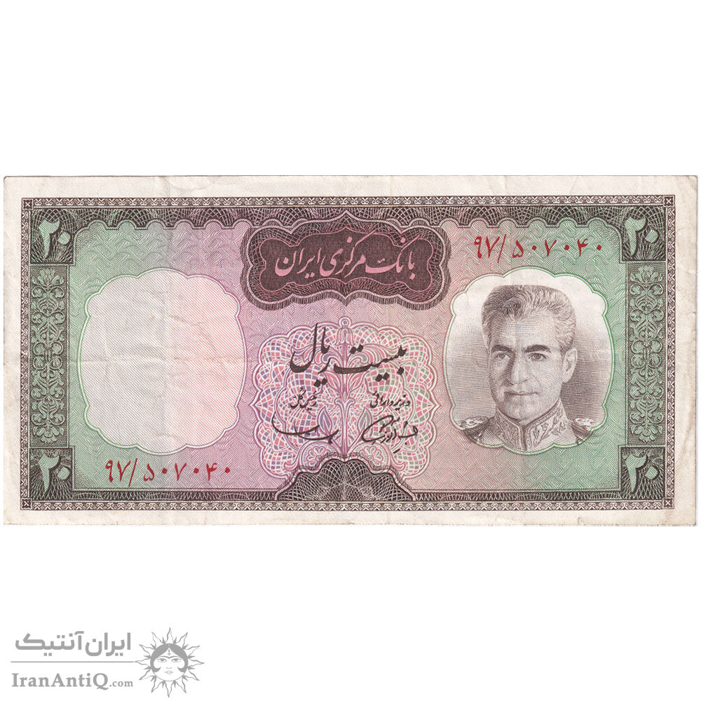 اسکناس 20 ریال (آموزگار - سمیعی) - تک - VF35 - محمد رضا شاه