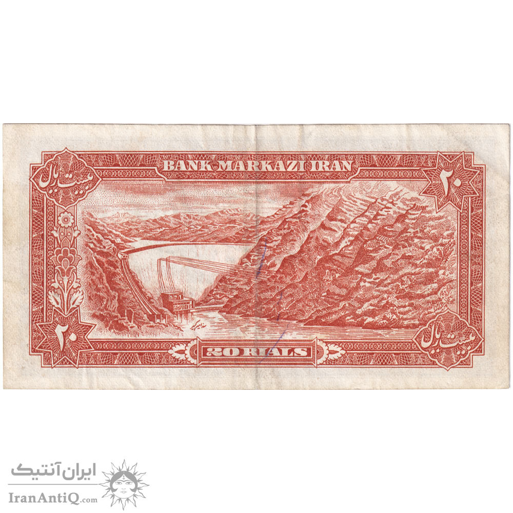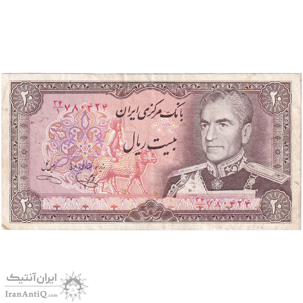 mohammad reza shah 20 rials (yegane - khoshkish) iran banknote - VF35