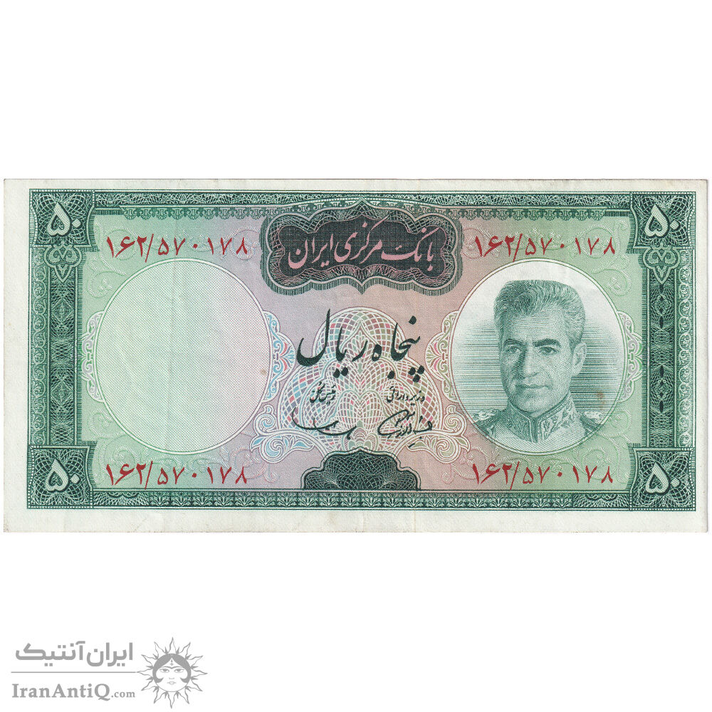 اسکناس 50 ریال (آموزگار - سمیعی) - تک - EF45 - محمد رضا شاه