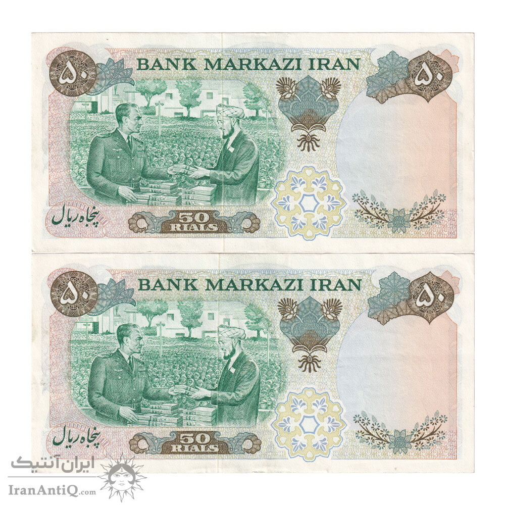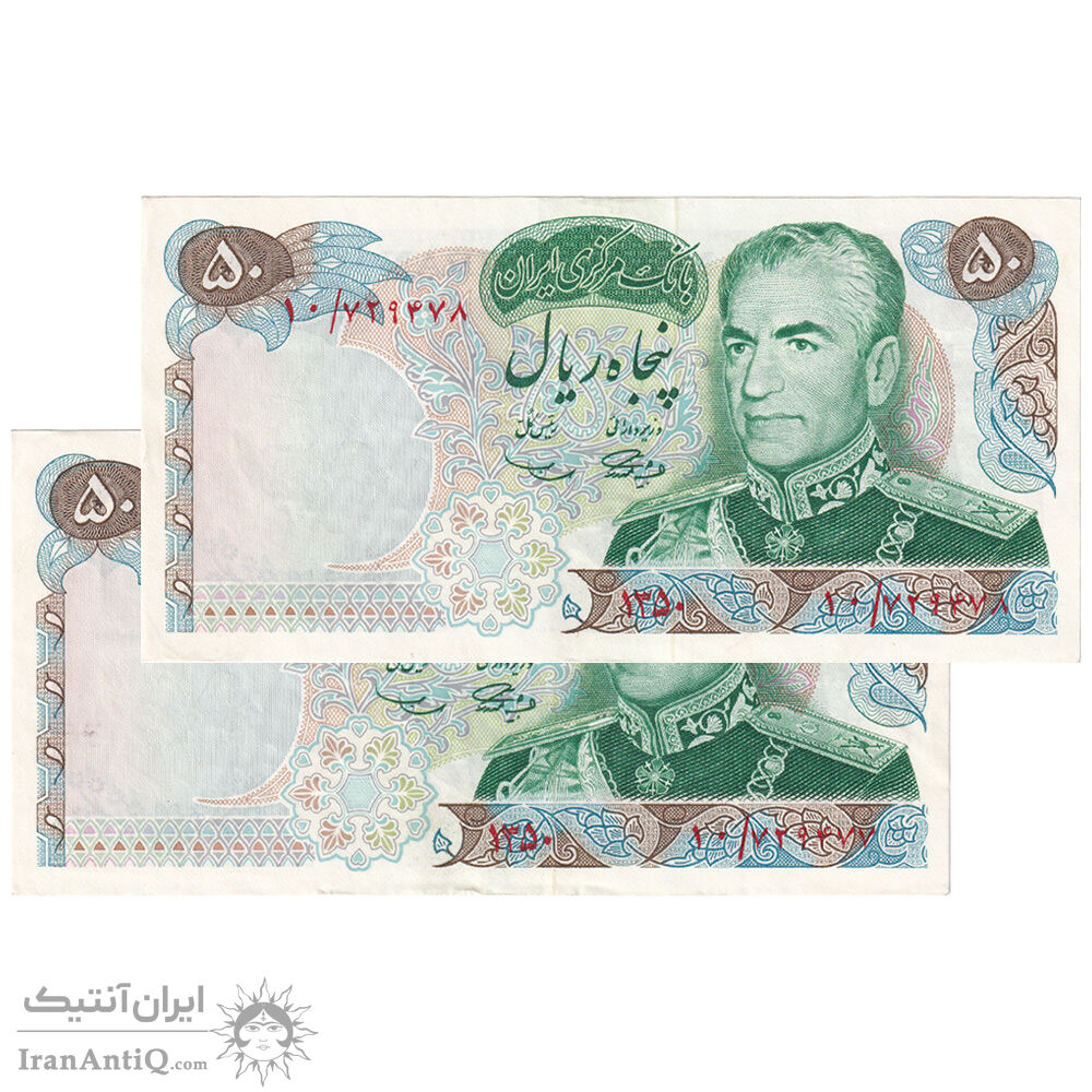 اسکناس 50 ریال 1350 (آموزگار - سمیعی) - جفت - EF45 - محمد رضا شاه