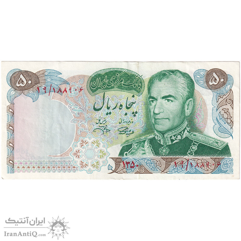 اسکناس 50 ریال 1350 (آموزگار - جهانشاهی) - تک - EF45 - محمد رضا شاه