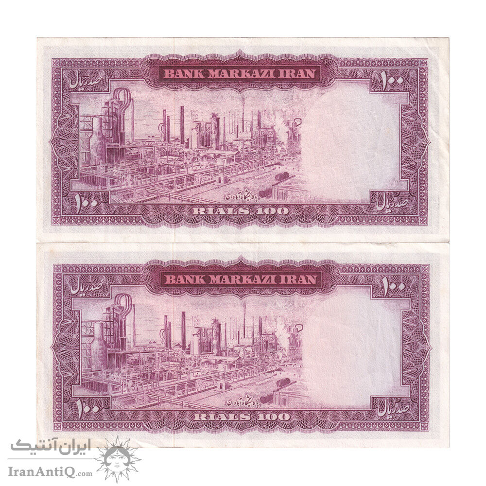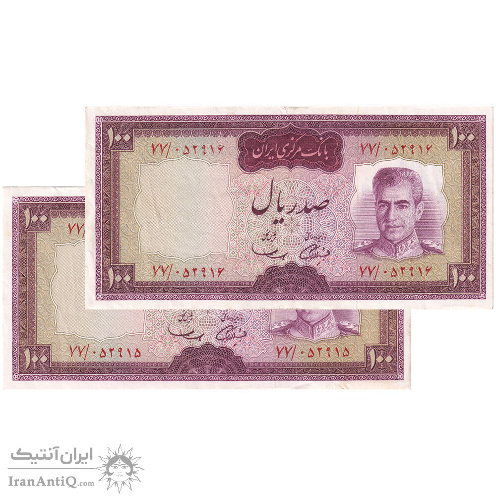 اسکناس 100 ریال (آموزگار - سمیعی) نوشته قرمز - جفت - EF45 - محمد رضا شاه