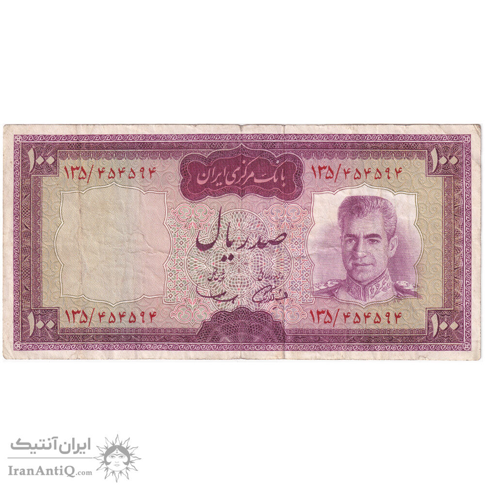 اسکناس 100 ریال (آموزگار - سمیعی) نوشته قرمز - تک - VF30 - محمد رضا شاه
