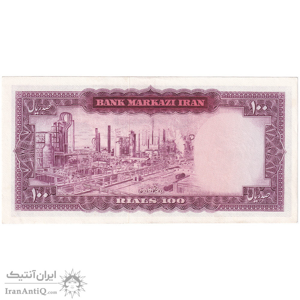 اسکناس 100 ریال (آموزگار - سمیعی) نوشته سیاه - تک - AU58 - محمد رضا شاه