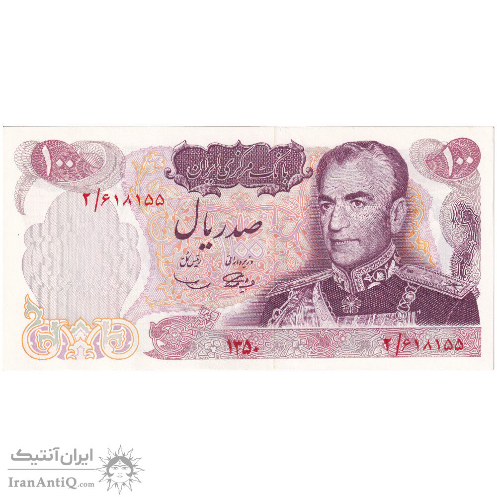 اسکناس 100 ریال 1350 - تک - UNC62 - محمد رضا شاه