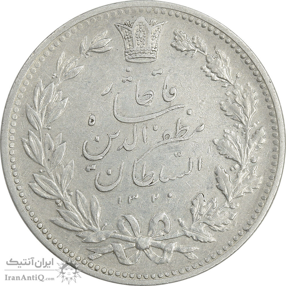 سکه 5000 دینار 1320 خطی - EF45 - مظفرالدین شاه