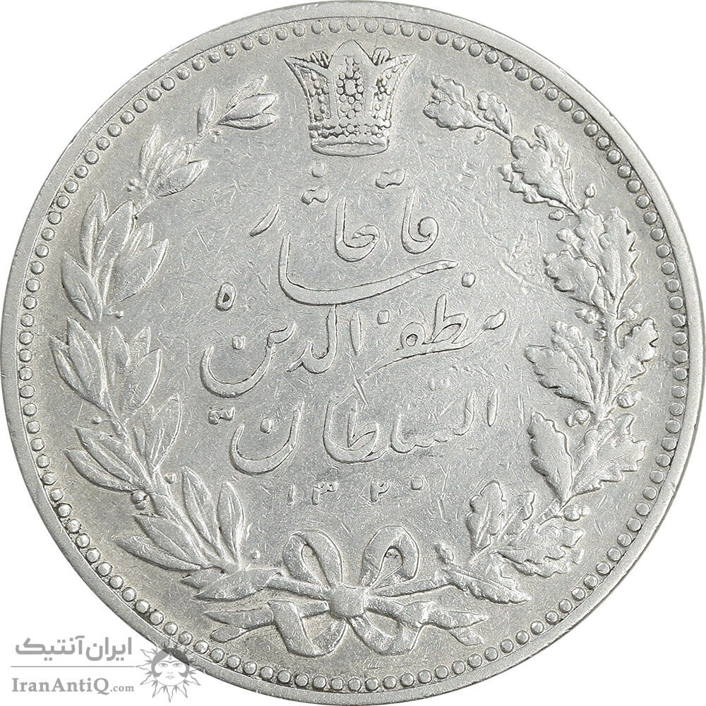 سکه 5000 دینار 1320 خطی - EF40 - مظفرالدین شاه