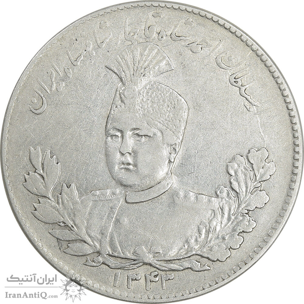 سکه 5000 دینار 1343 تصویری - با یقه - EF45 - احمد شاه