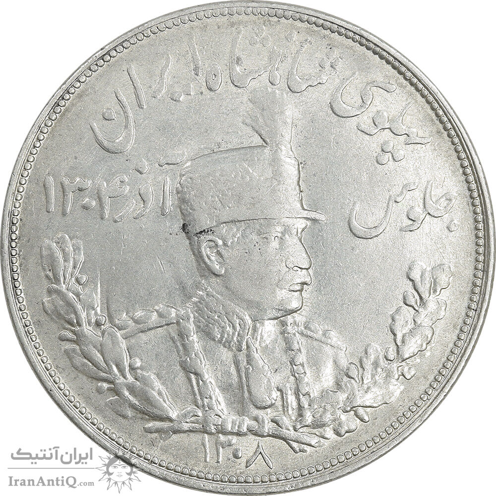Iran 5000 dinars 1308 coin - AU58 - reza Shah pahlavi