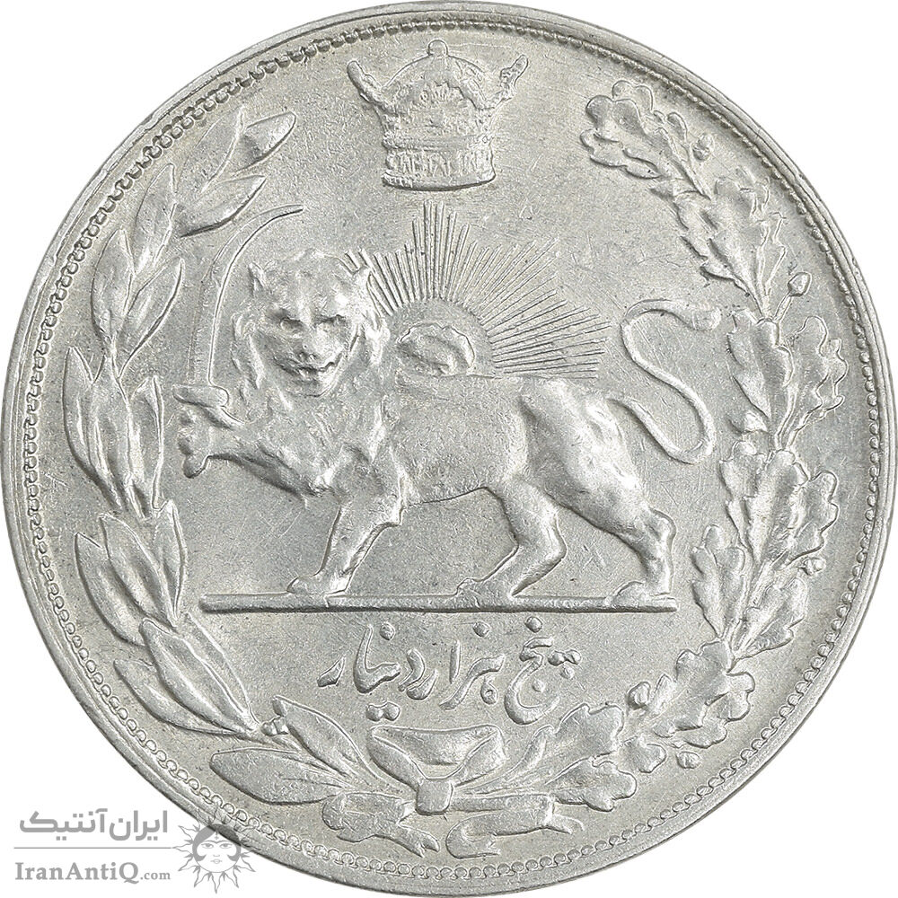 سکه 5000 دینار 1308 تصویری - AU58 - رضا شاه