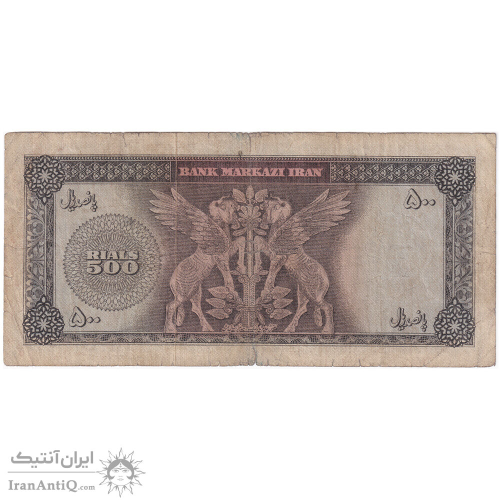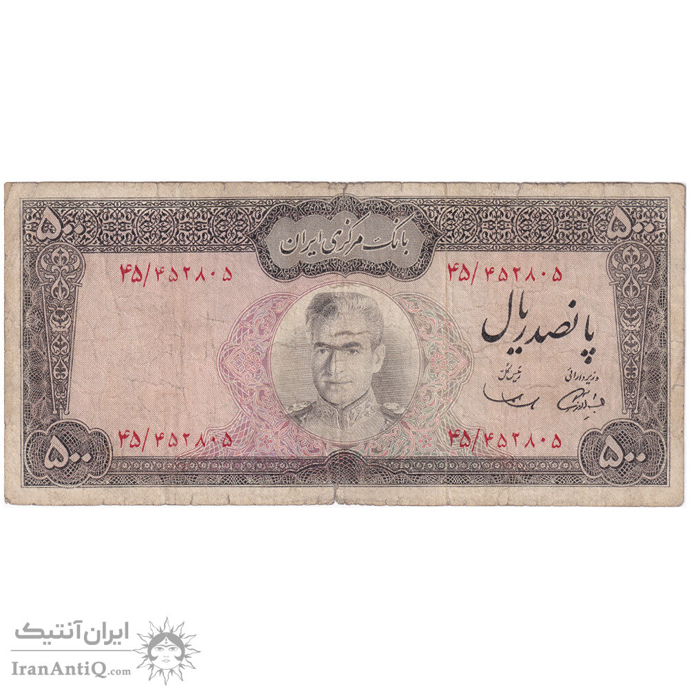 اسکناس 500 ریال (آموزگار - سمیعی) نوشته قرمز - تک - F - محمد رضا شاه