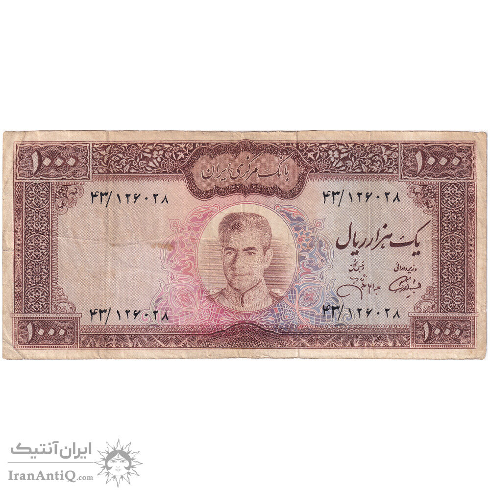 mohammad reza shah 1000 rials (amuzegar - jahanshai) iran banknote - VF25