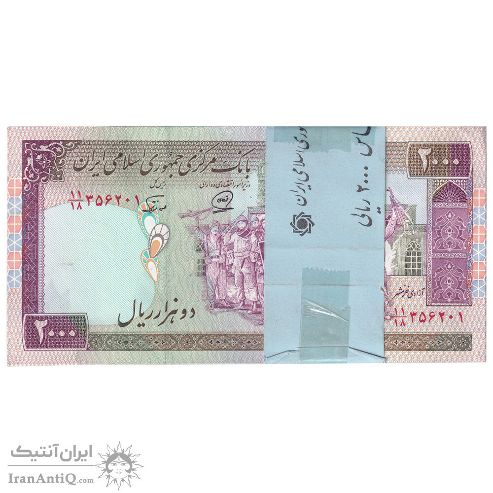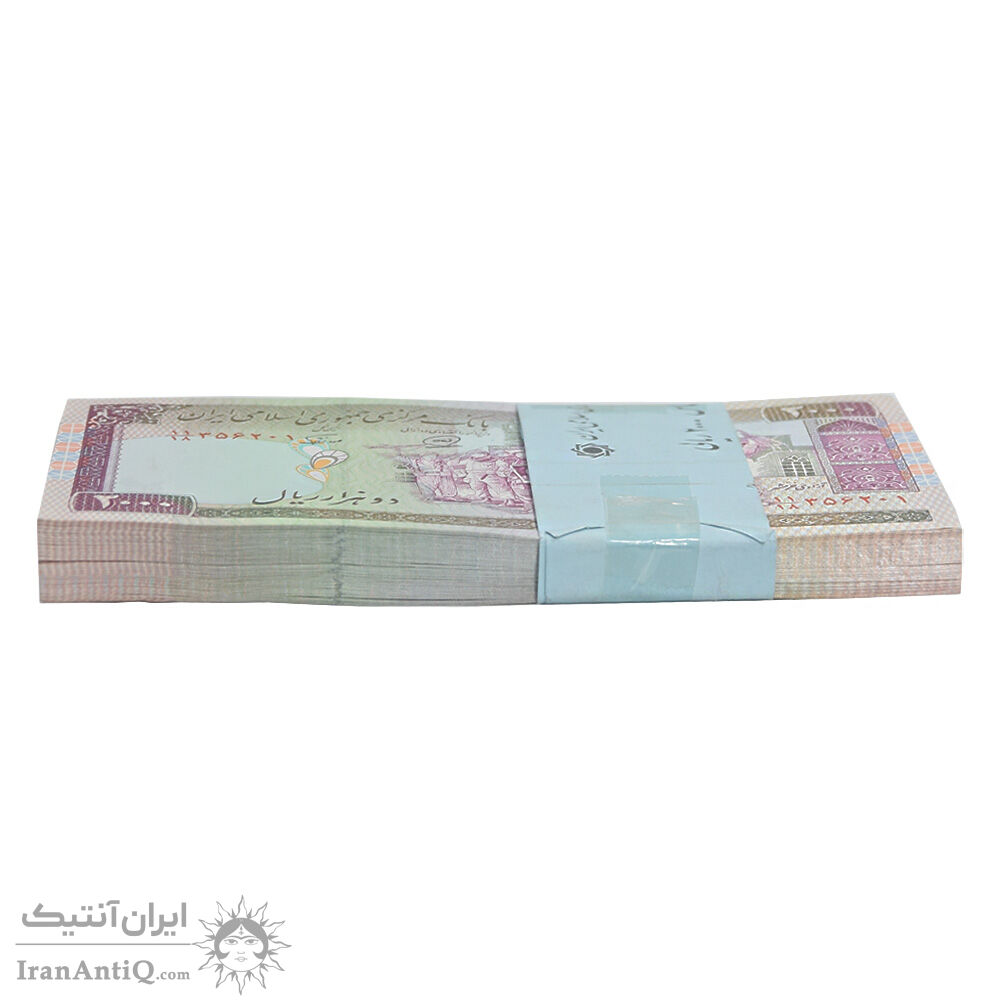 بسته اسکناس 2000 ریال (محمدخان - نوربخش) شماره بزرگ - نخ کامپیوتری - UNC - جمهوری اسلامی