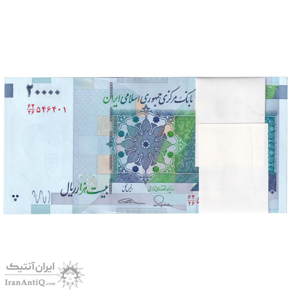 بسته اسکناس 20000 ریال (طیب نیا - سیف) بادگیر - شماره دوقلو افزایشی - UNC - جمهوری اسلامی