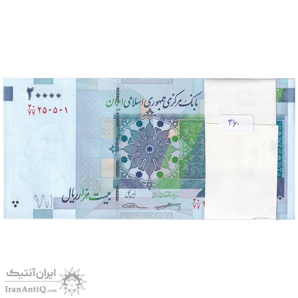 بسته اسکناس 20000 ریال (کرباسیان - سیف) نخ نوع 2 - UNC - جمهوری اسلامی