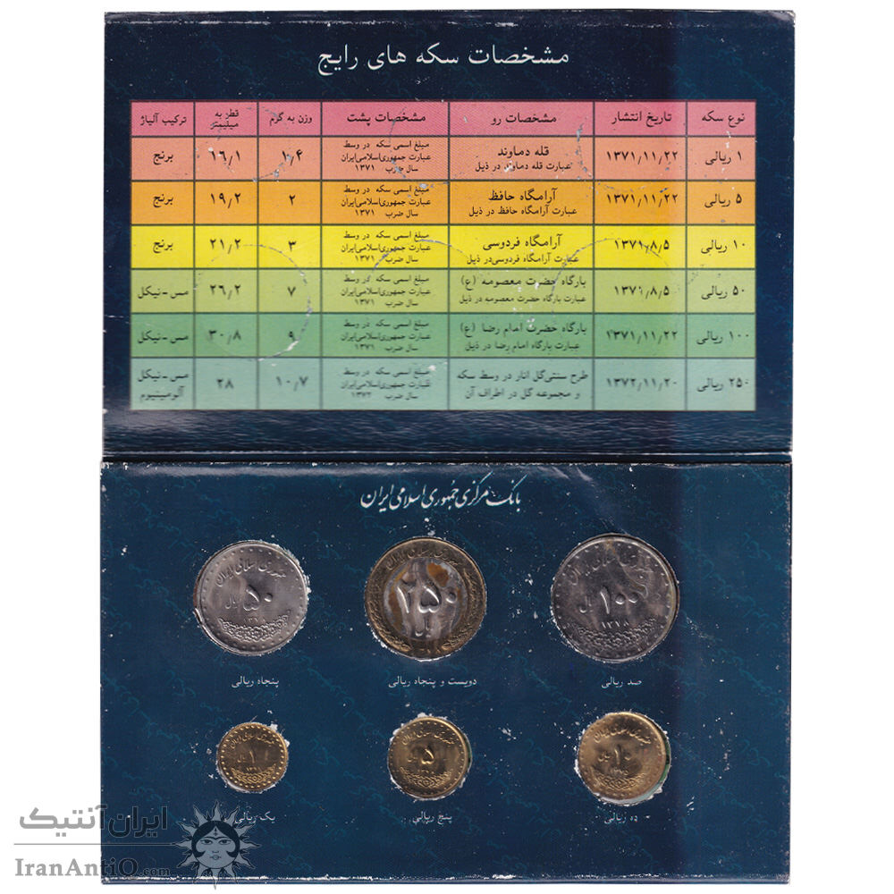 پک سکه های رایج بانک مرکزی (سکه 1 ریال 1371 دماوند) - UNC - جمهوری اسلامی