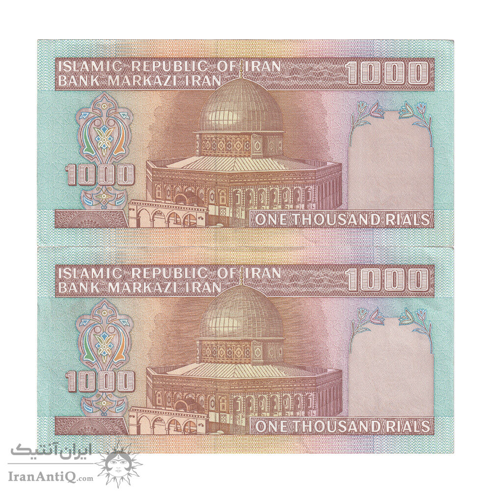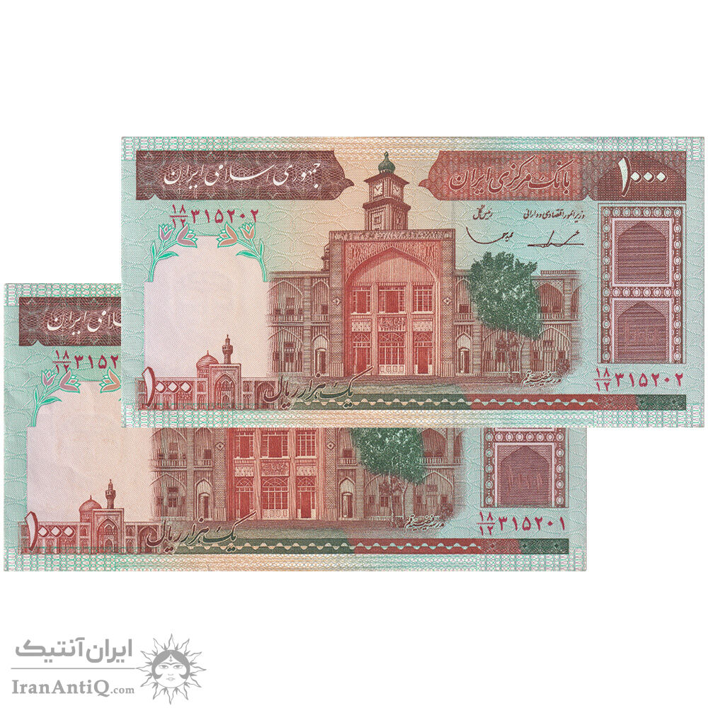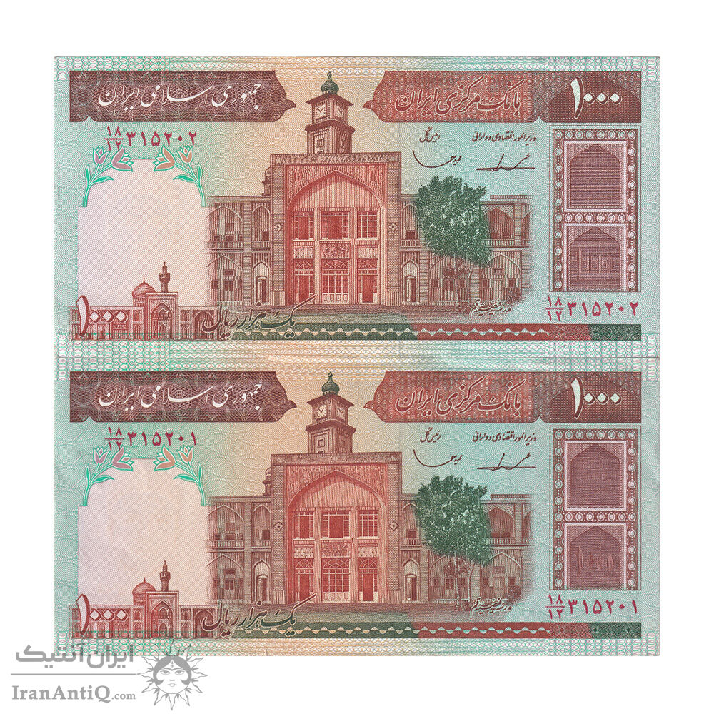 اسکناس 1000 ریال (ایروانی - قاسمی) فیلیگران بدون خط یقه - جفت - EF45 - جمهوری اسلامی