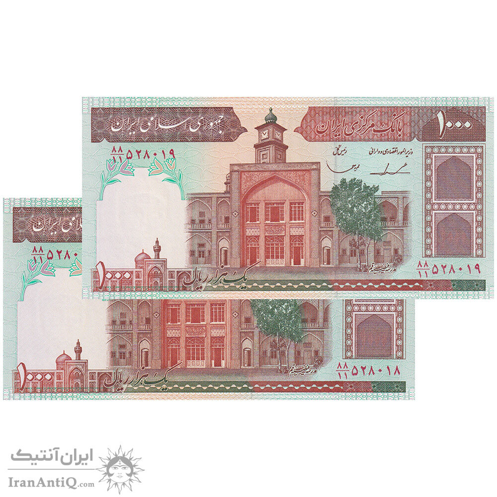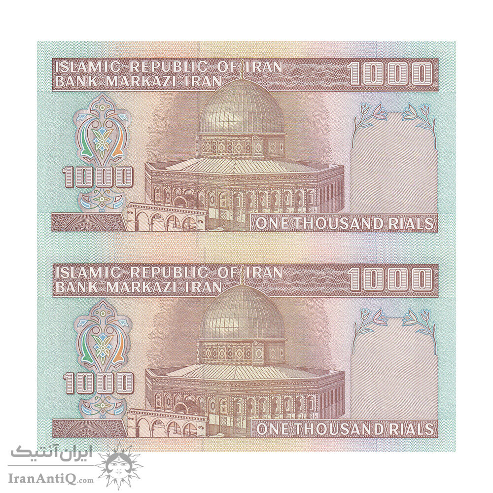 اسکناس 1000 ریال (ایروانی - قاسمی) فیلیگران بدون خط یقه - جفت - UNC63 - جمهوری اسلامی