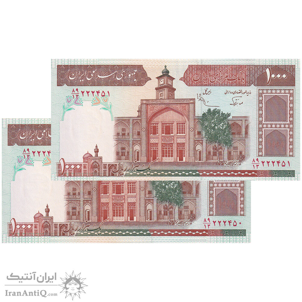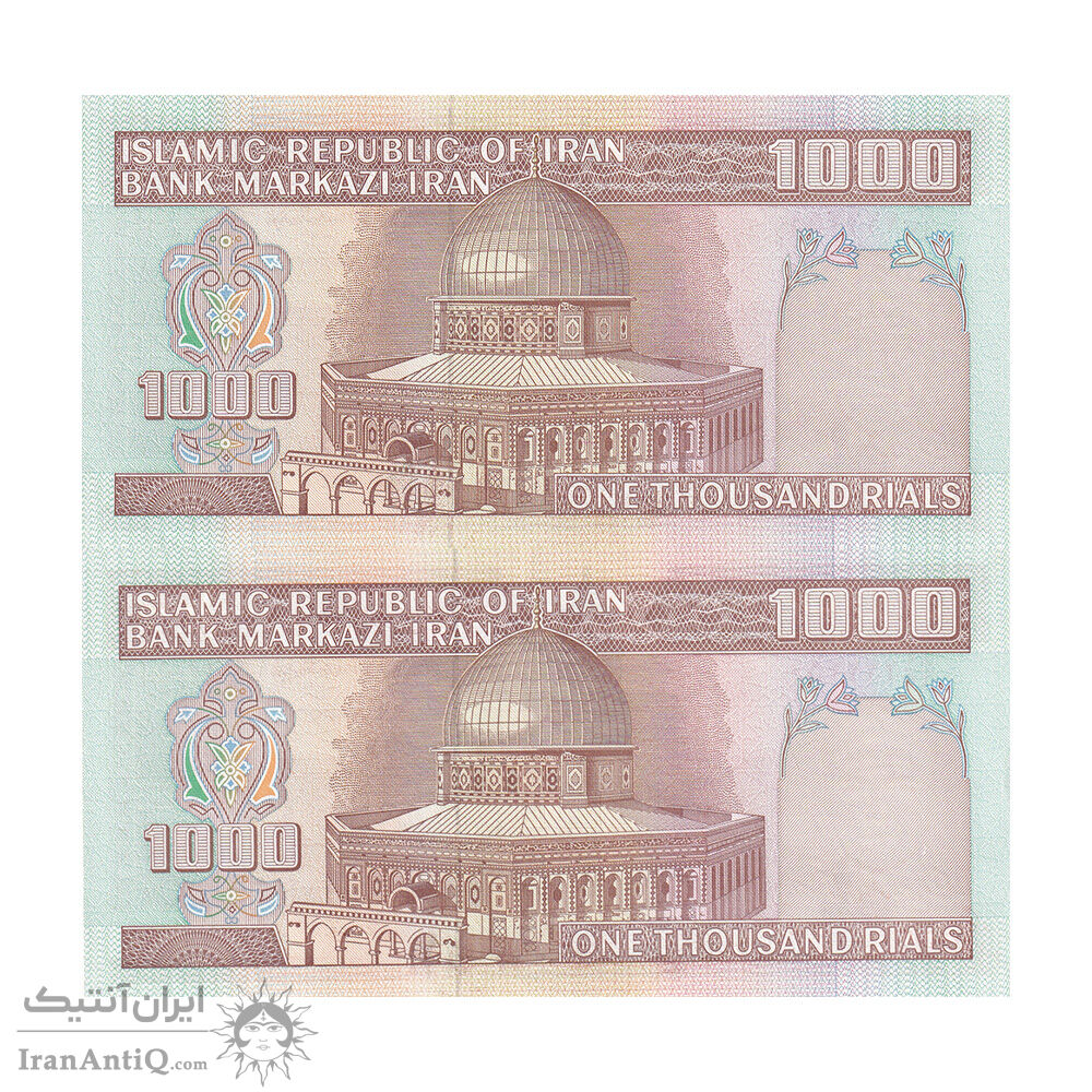 اسکناس 1000 ریال (نوربخش - عادلی) شماره بزرگ - امضاء بزرگ - جفت - UNC63 - جمهوری اسلامی