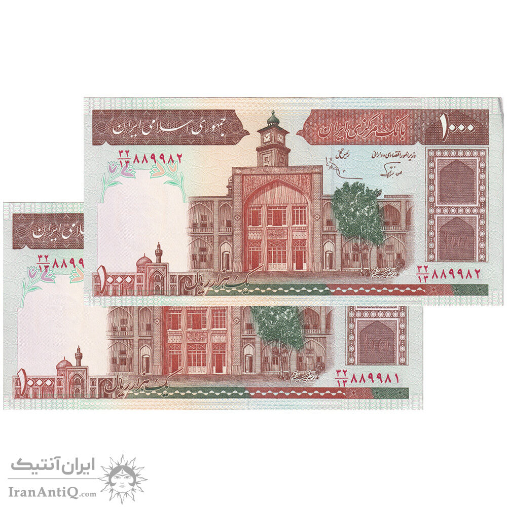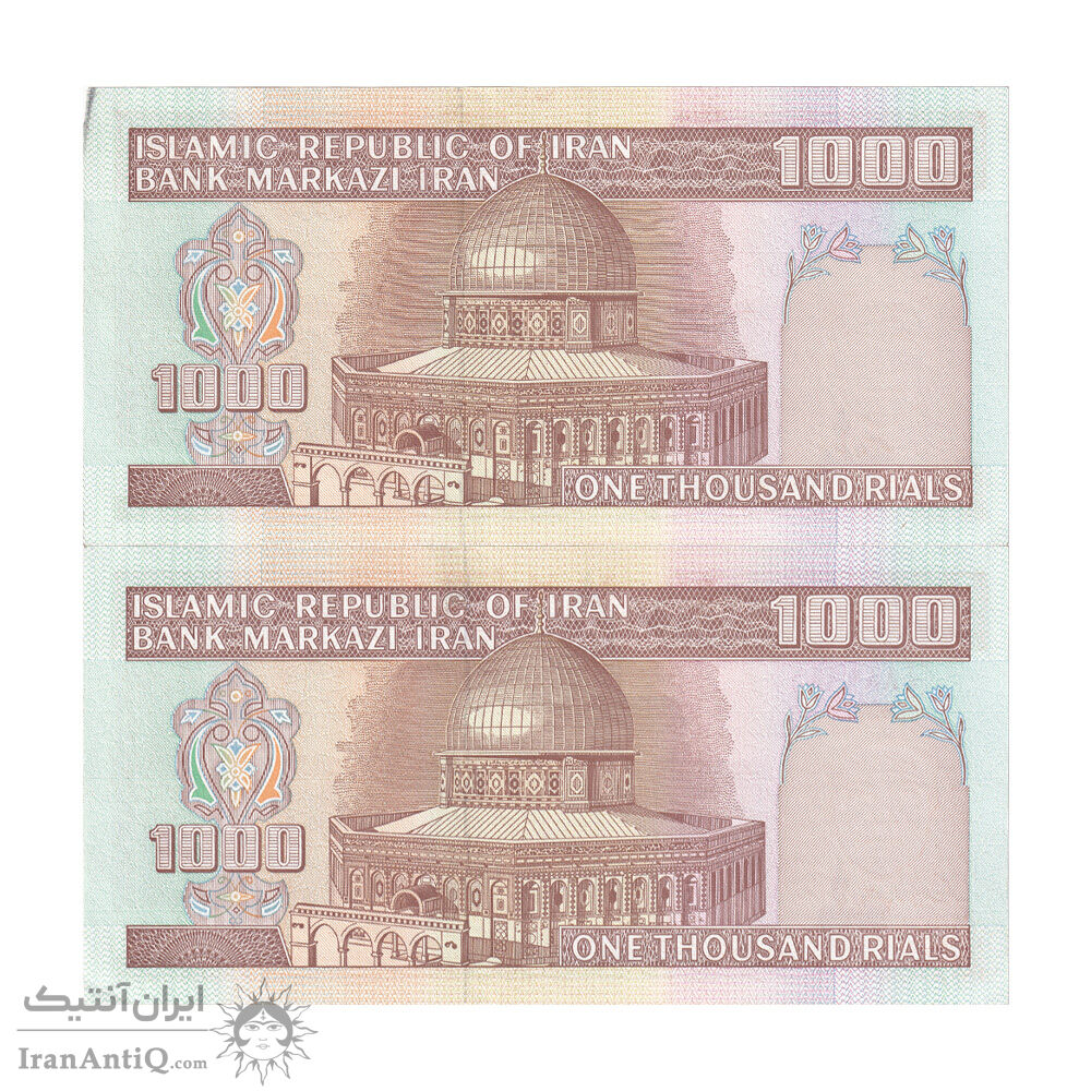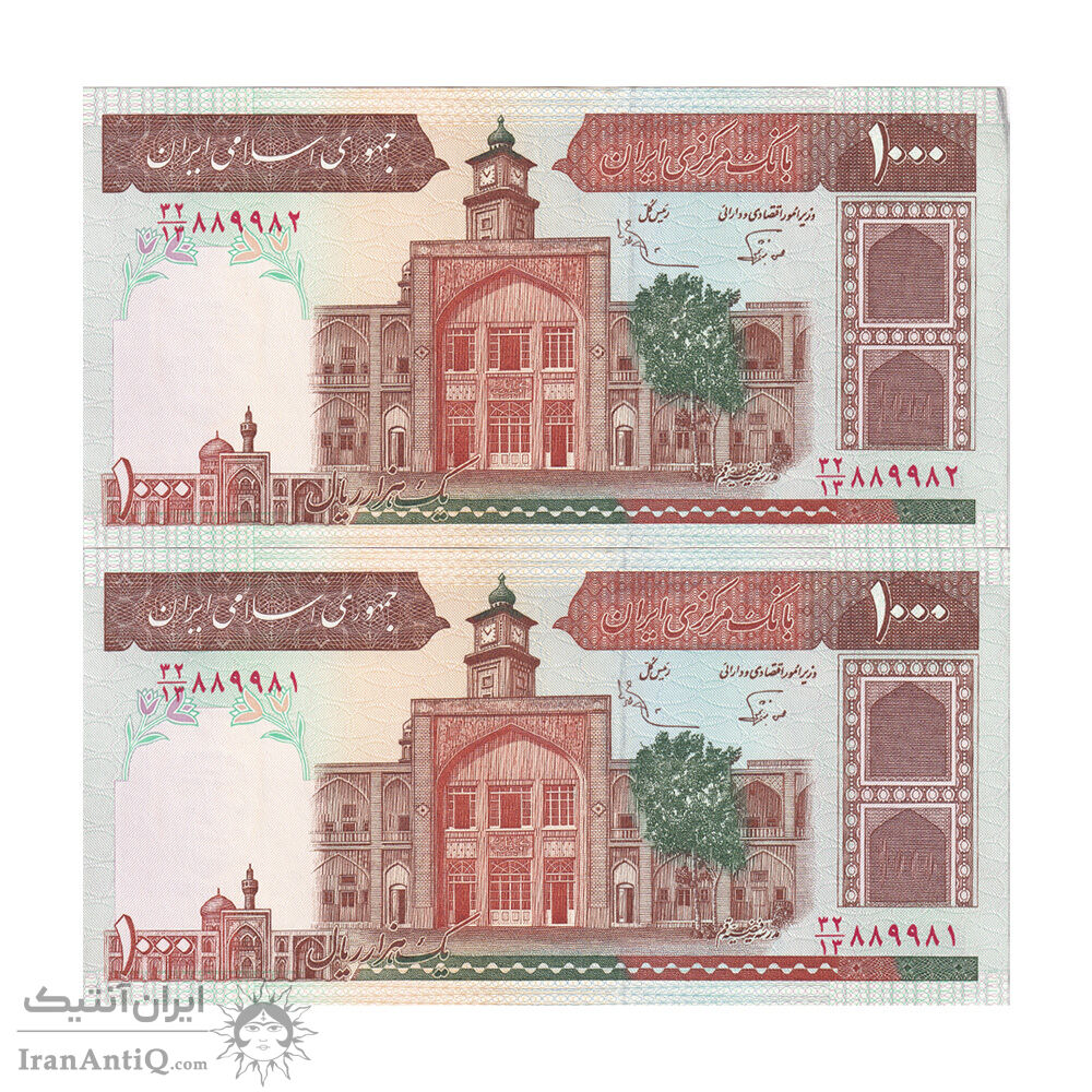 اسکناس 1000 ریال (نوربخش - عادلی) شماره بزرگ - امضاء بزرگ - جفت - UNC61 - جمهوری اسلامی
