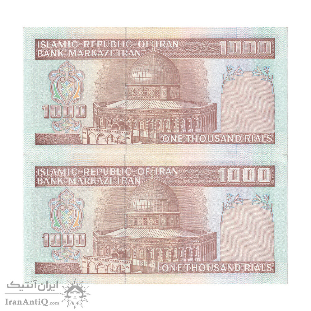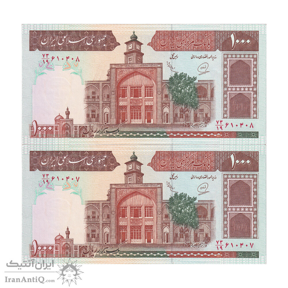 اسکناس 1000 ریال (محمدخان - عادلی) شماره کوچک - نخ کامپیوتری - جفت - UNC62 - جمهوری اسلامی