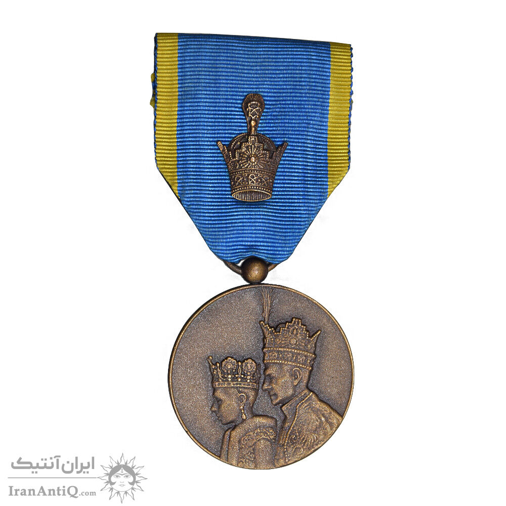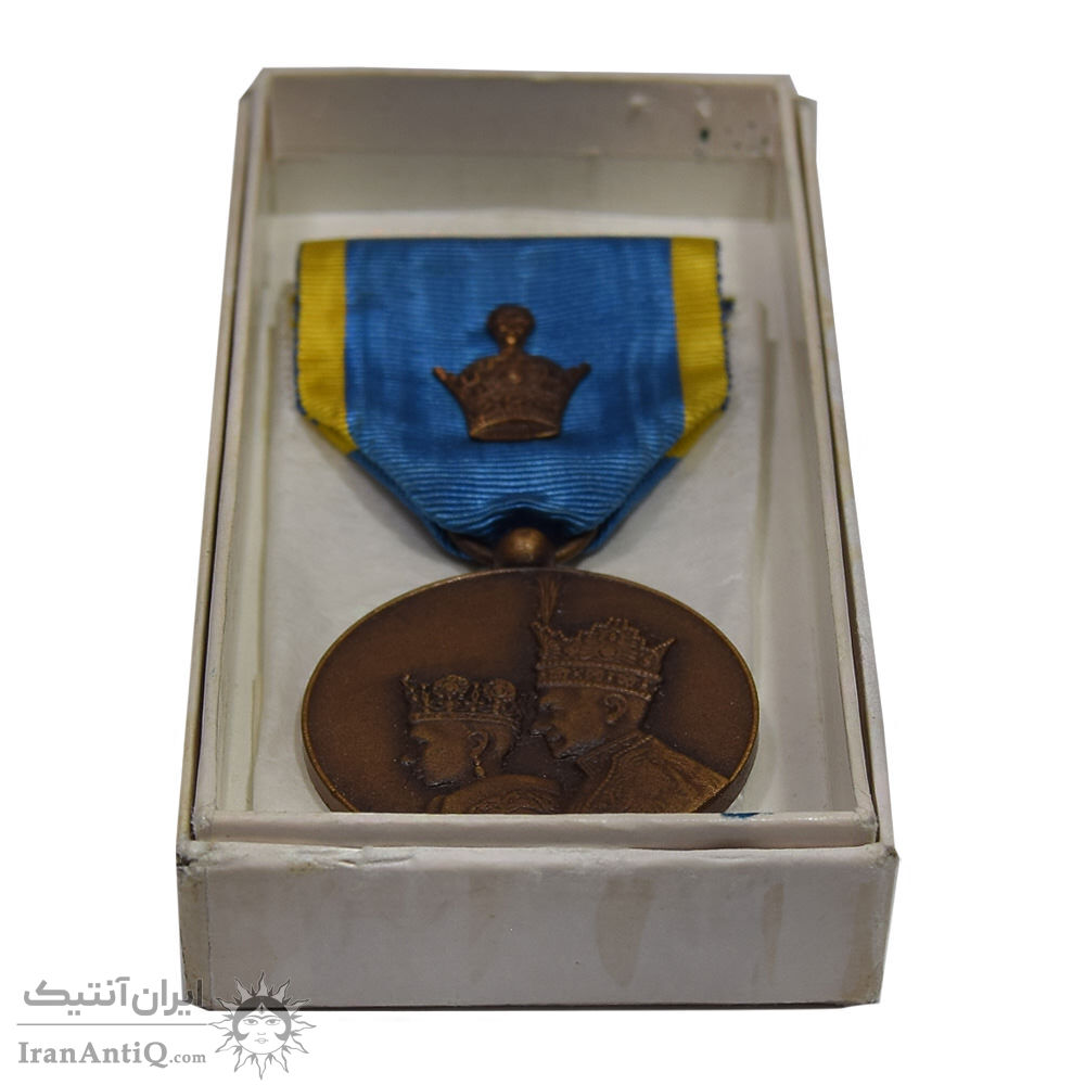 مدال برنز آویزی تاجگذاری 1346 (روز) با جعبه فابریک - UNC - محمد رضا شاه
