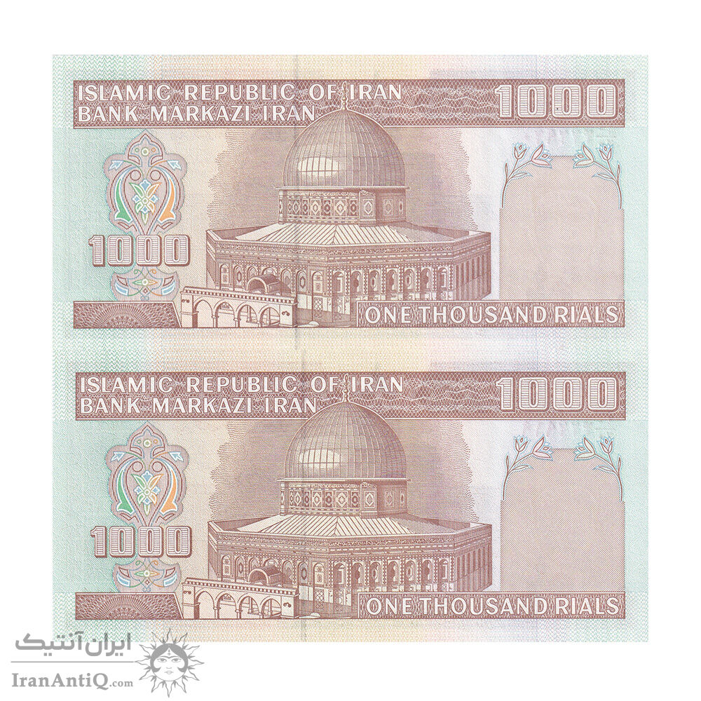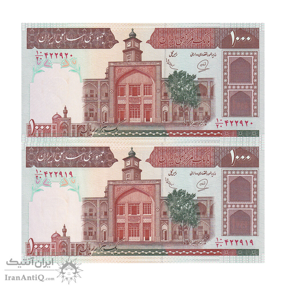 اسکناس 1000 ریال (محمدخان - عادلی) شماره بزرگ - نخ کامپیوتری - جفت - UNC63 - جمهوری اسلامی