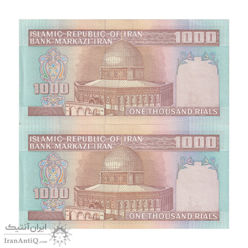 اسکناس 1000 ریال (نمازی - نوربخش) فیلیگران با خط یقه - جفت - UNC62 - جمهوری اسلامی