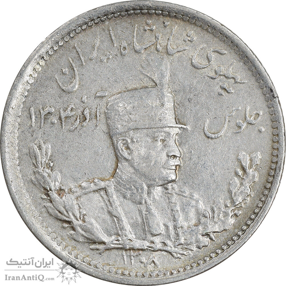 سکه 1000 دینار 1308 تصویری - AU50 - رضا شاه