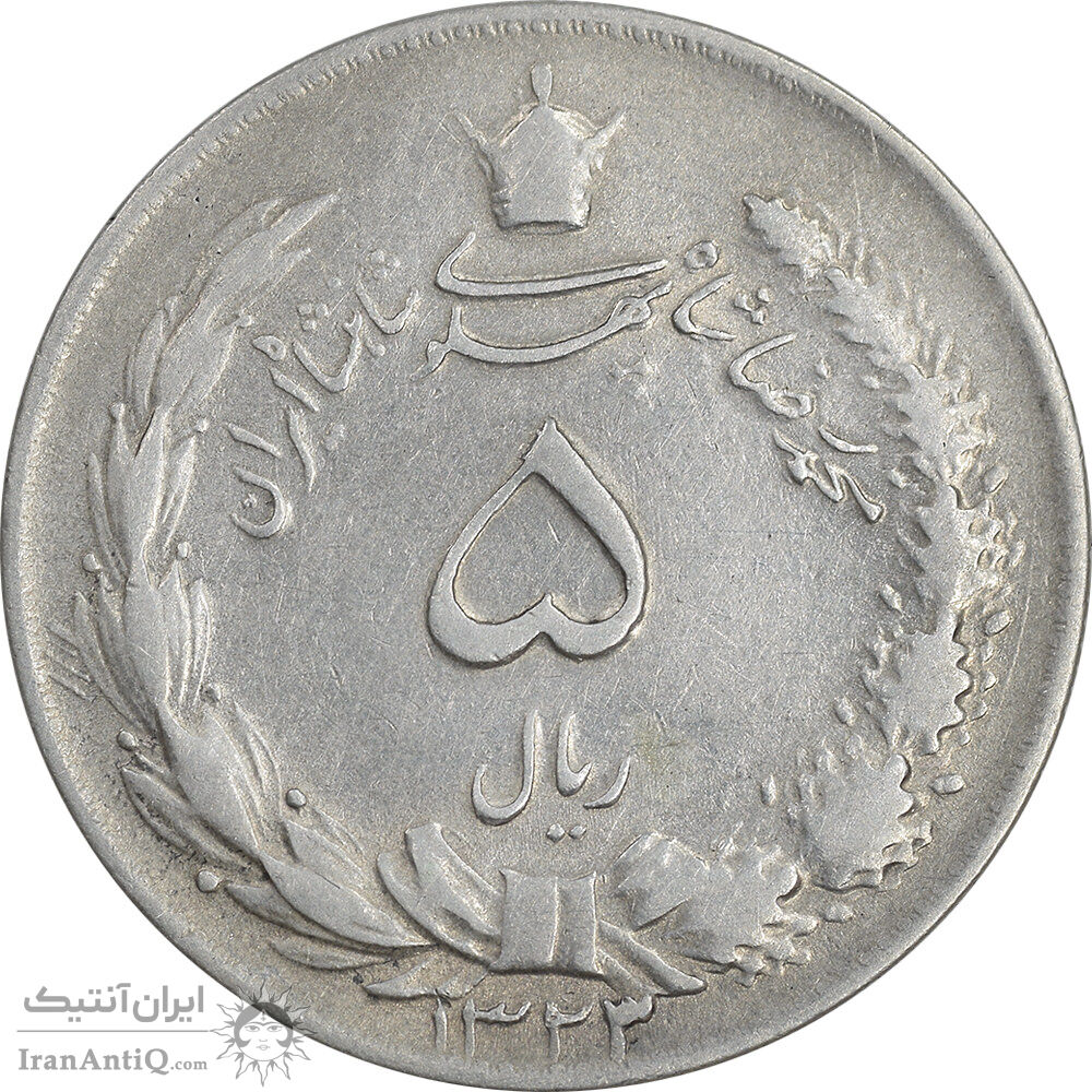 سکه 5 ریال 1323/2 - سورشارژ تاریخ - EF45 - محمد رضا شاه