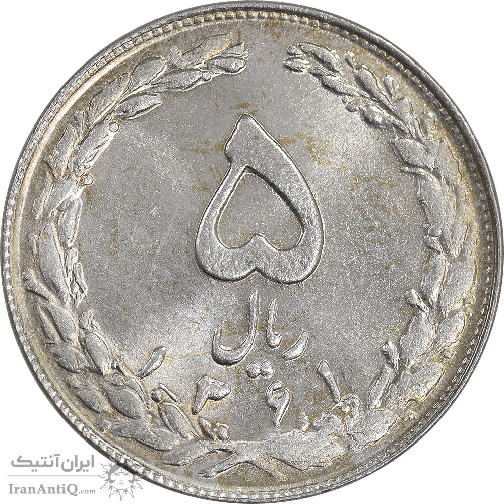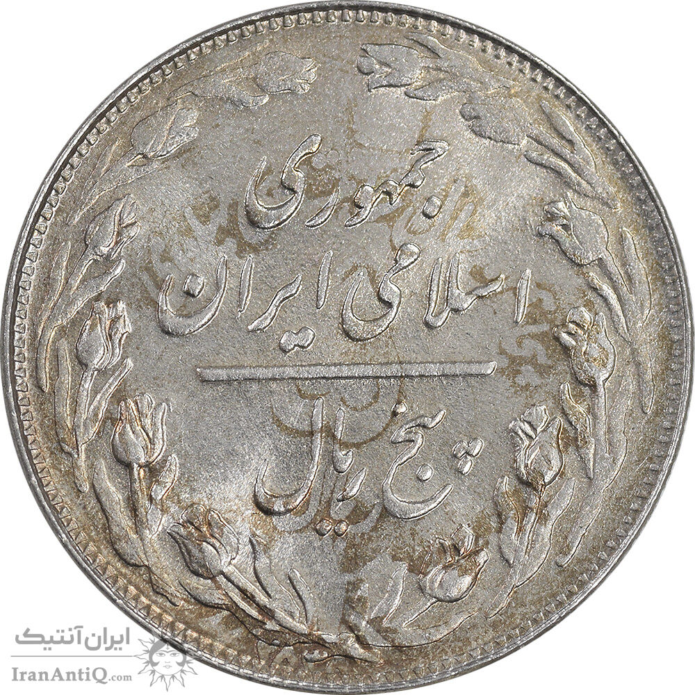 سکه 5 ریال 1361 تاریخ کوچک - 1 بلند - پرسی - MS62 - جمهوری اسلامی