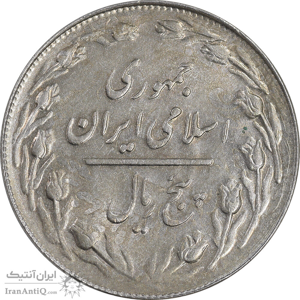 سکه 5 ریال 1361 تاریخ کوچک - 1 بلند - پرسی - AU55 - جمهوری اسلامی