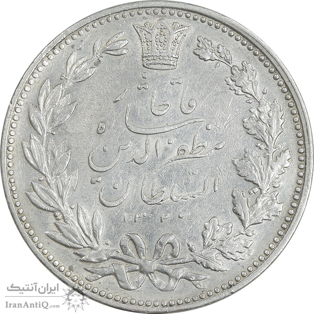 سکه 5000 دینار 1320 خطی - EF45 - مظفرالدین شاه