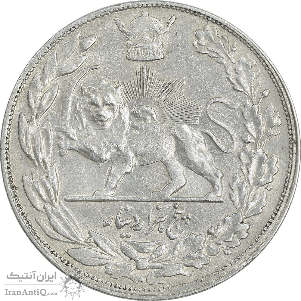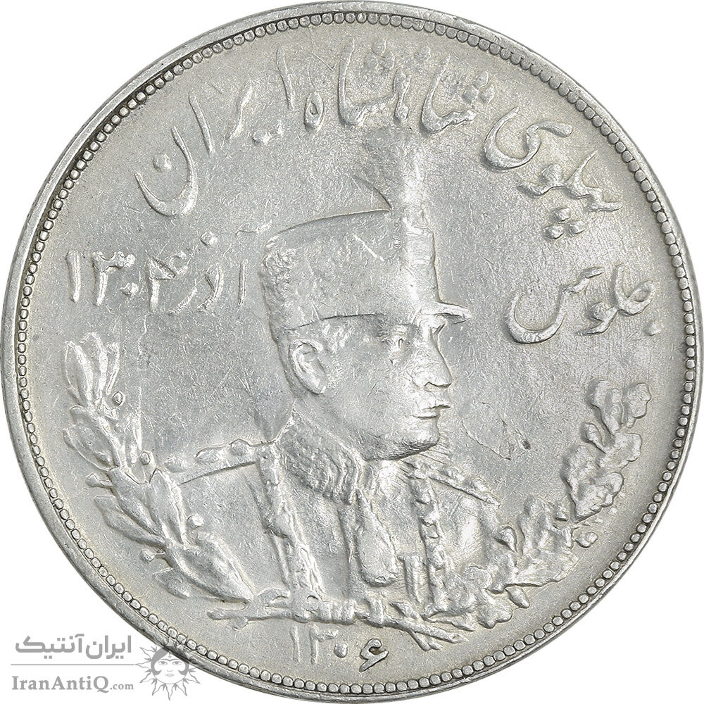 سکه 5000 دینار 1306 تصویری - ضرب تهران - AU53 - رضا شاه