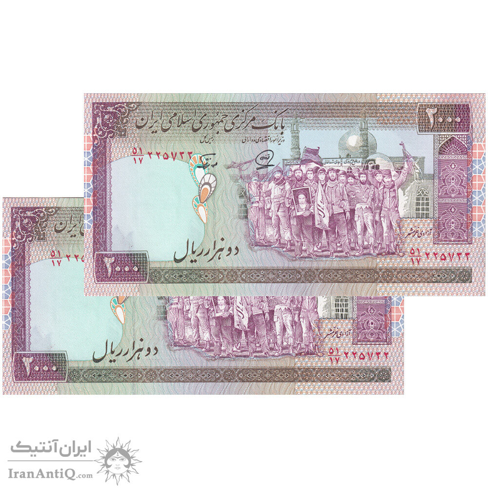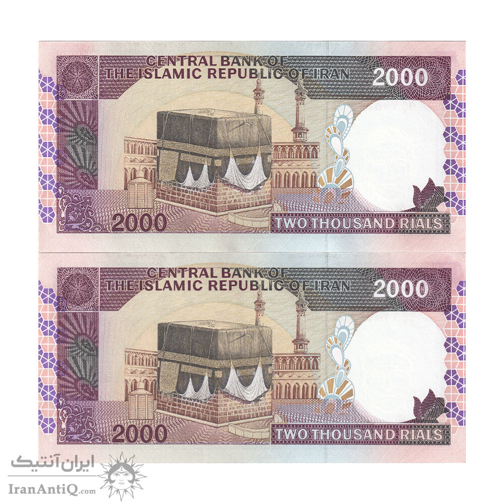 اسکناس 2000 ریال (محمدخان - نوربخش) شماره کوچک - جفت - UNC63 - جمهوری اسلامی