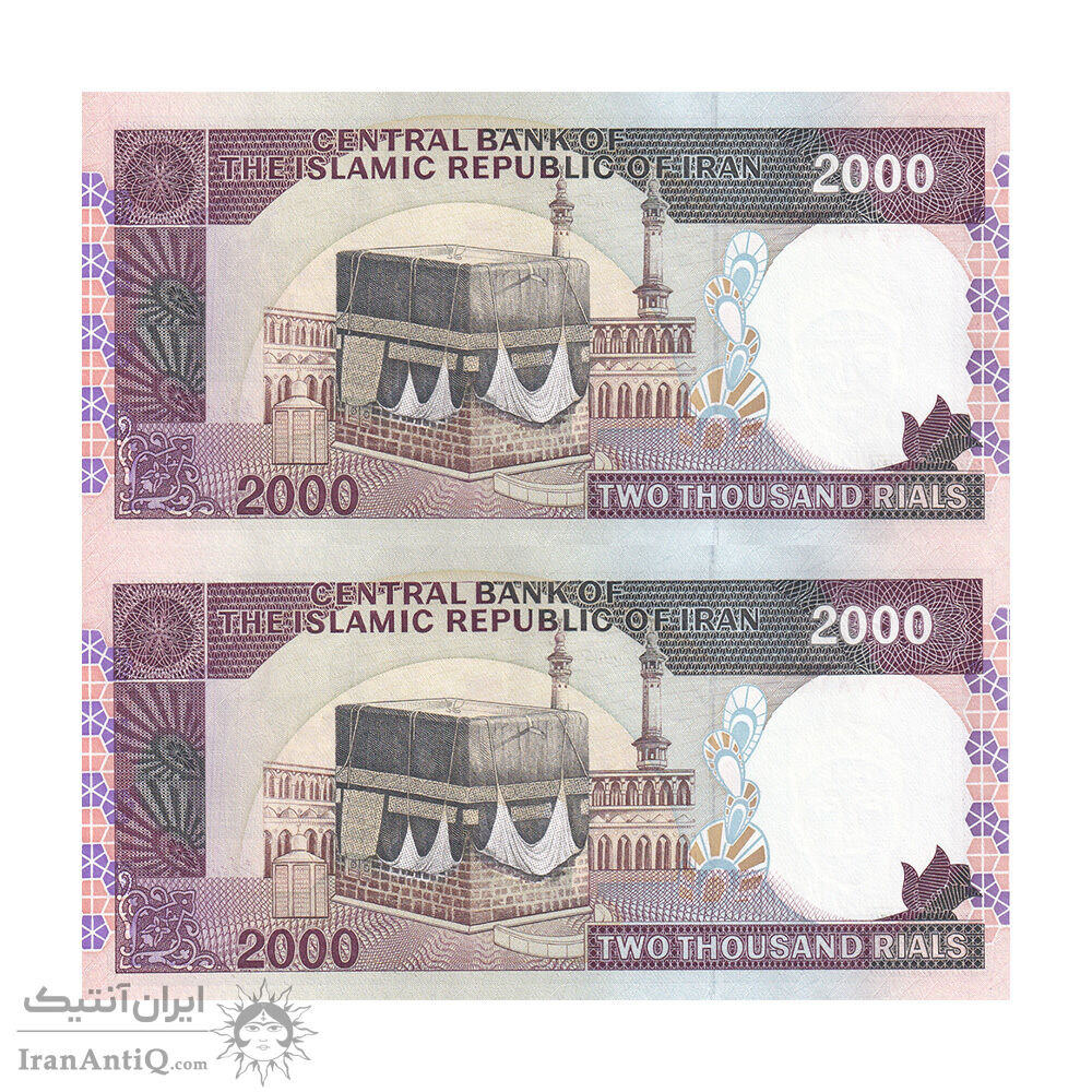 اسکناس 2000 ریال (محمدخان - نوربخش) شماره بزرگ - نخ نستعلیق - جفت - UNC64 - جمهوری اسلامی