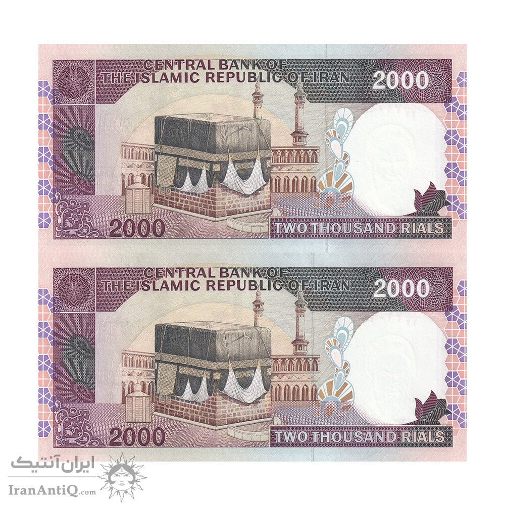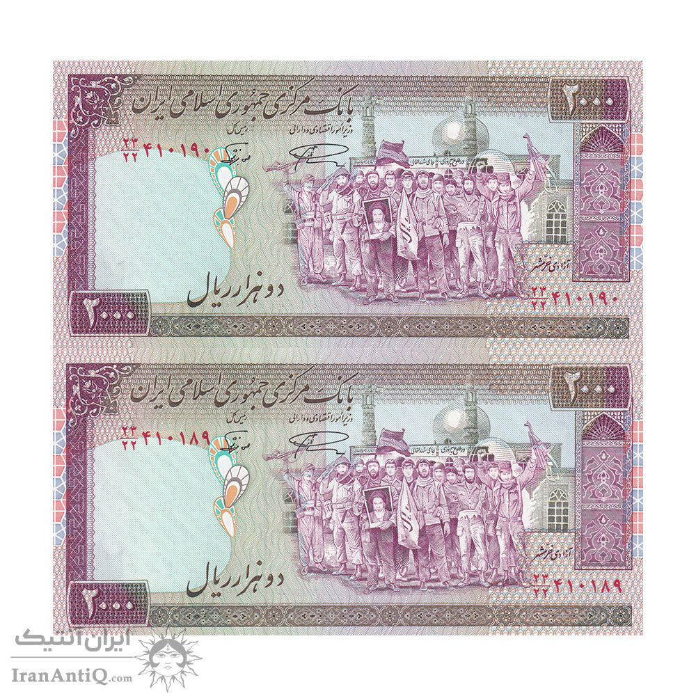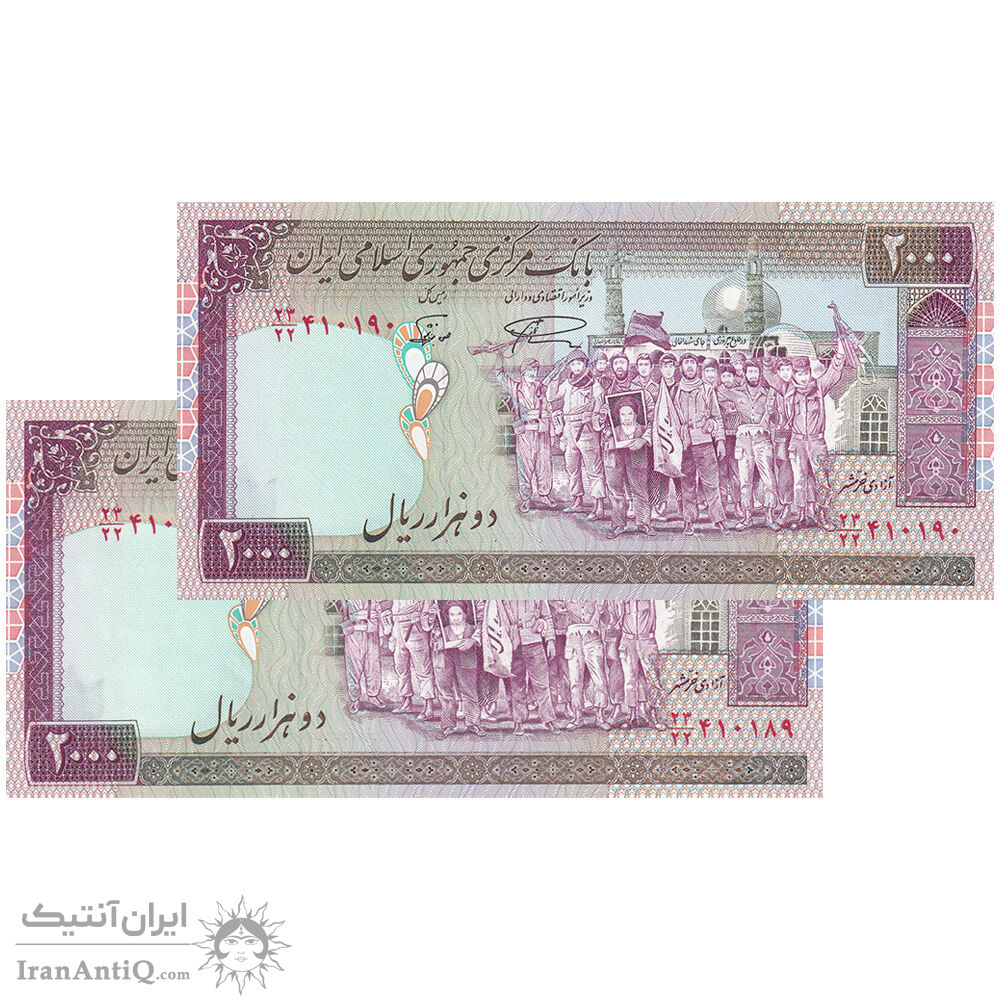 اسکناس 2000 ریال (محمدخان - نوربخش) شماره بزرگ - نخ کامپیوتری - جفت - UNC64 - جمهوری اسلامی