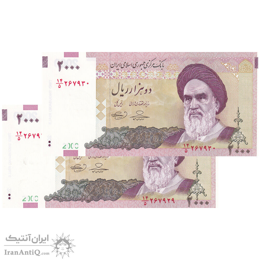 اسکناس 2000 ریال (حسینی - بهمنی) - جفت - UNC63 - جمهوری اسلامی
