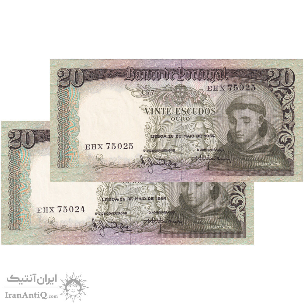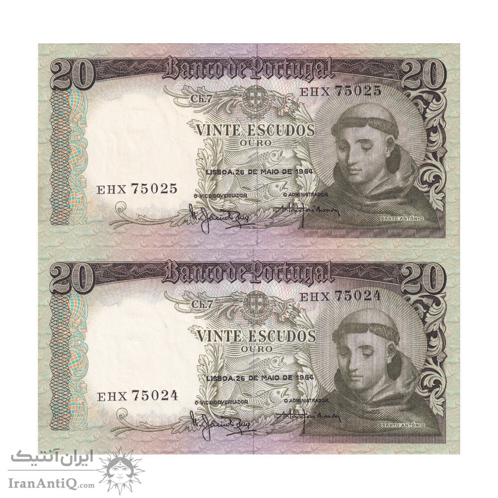 اسکناس 20 اسکودو 1964 جمهوری دوم - جفت - UNC64 - پرتغال