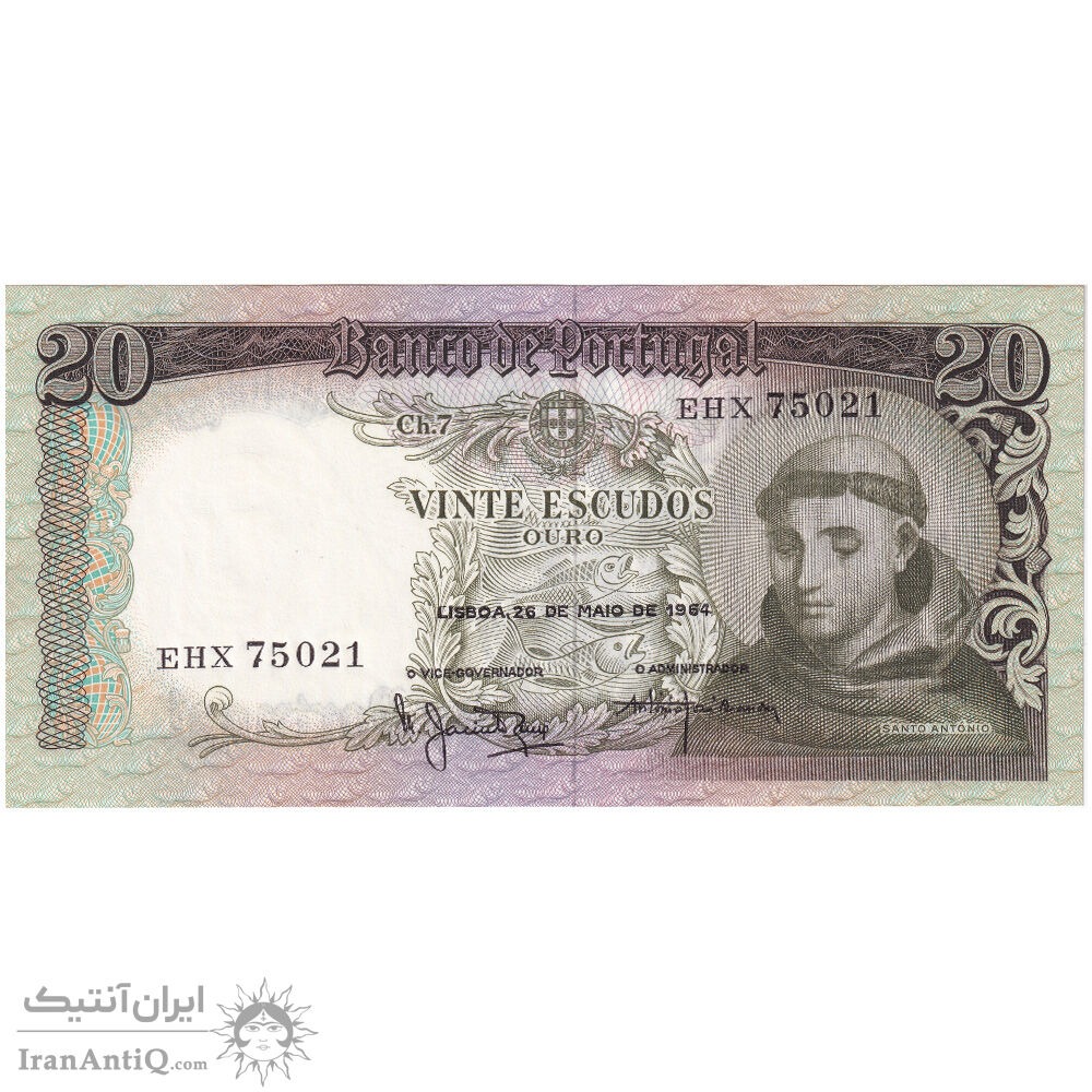 اسکناس 20 اسکودو 1964 جمهوری دوم - تک - UNC63 - پرتغال